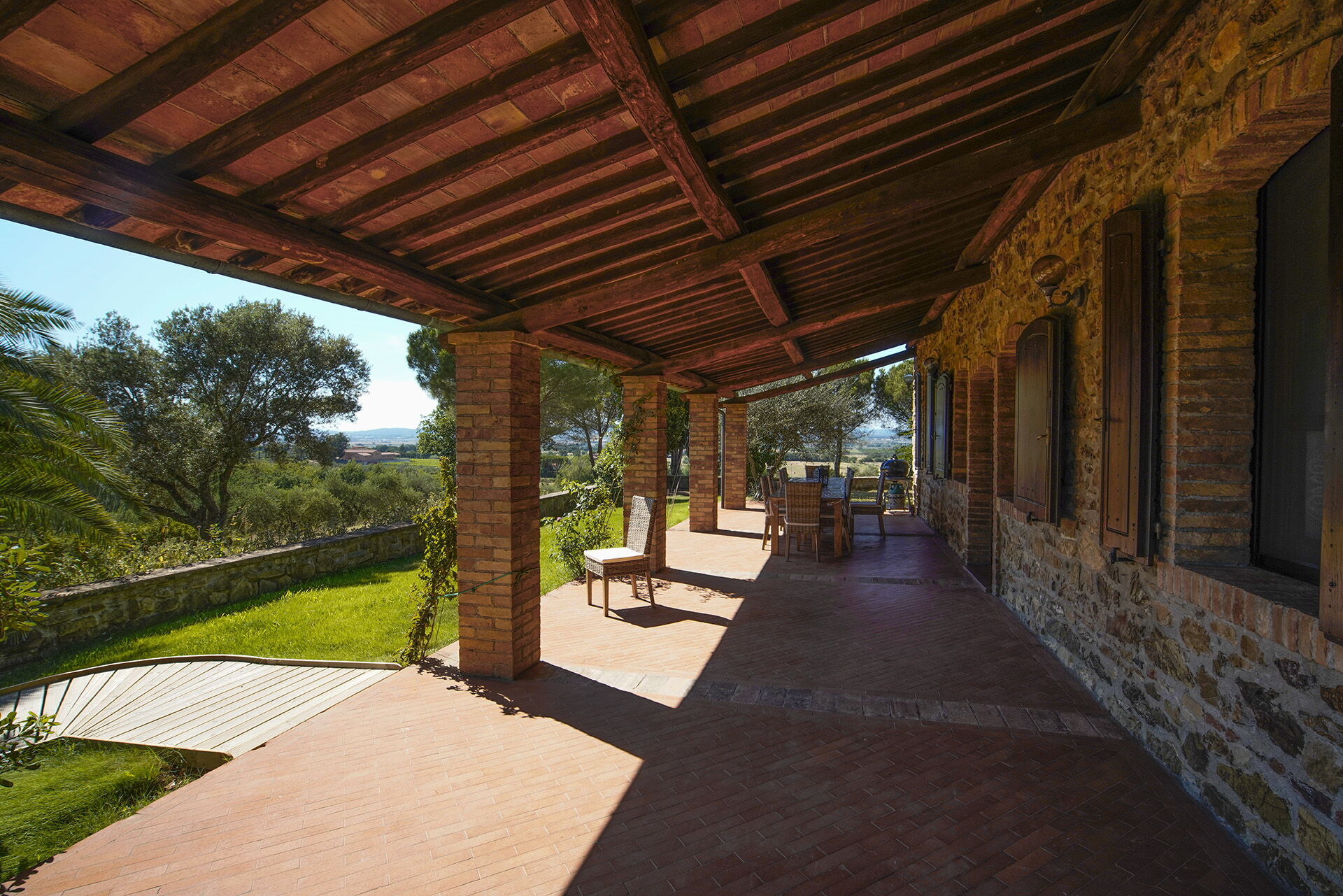 Ved ankomst vil I blive budt velkommen af ejeren eller repræsentanten og I vil finde en flot ren og velholdt ejendom med udsigt over bakkerne og havet ideel til en fredelig ferie i Toscana. Uanset hvordan I tilbringer dagene - med museumsbesøg, sightseeing, shopping eller bare ved at køre rundt på landet, så kan I køle ned med familie og venner ved poolen, når I kommer hjem, hvilket er en perfekt måde at afslutte endnu en dejlig dag på i Toscana. Til jeres store nydelse er der på ejendommen grill og legeplads. Hvis I nyder at lave mad til familie og venner så er der et veludstyret køkken inkluderet kaffemaskine, mikroovn, brødrister og køleskab, samt, , samt masser af service og bestik til op til 13 personer.