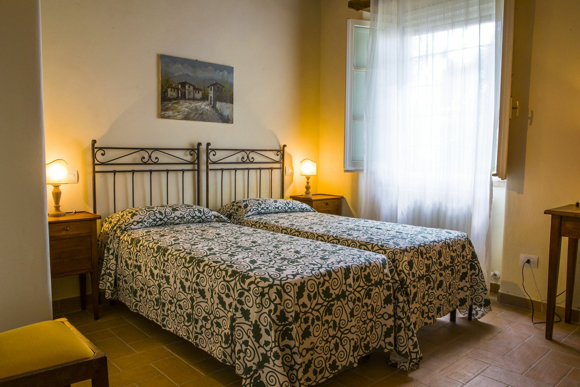 Soveværelse med bad 2: to enkeltsenge, WIFI internet, vask, wc, bidet, bruser.