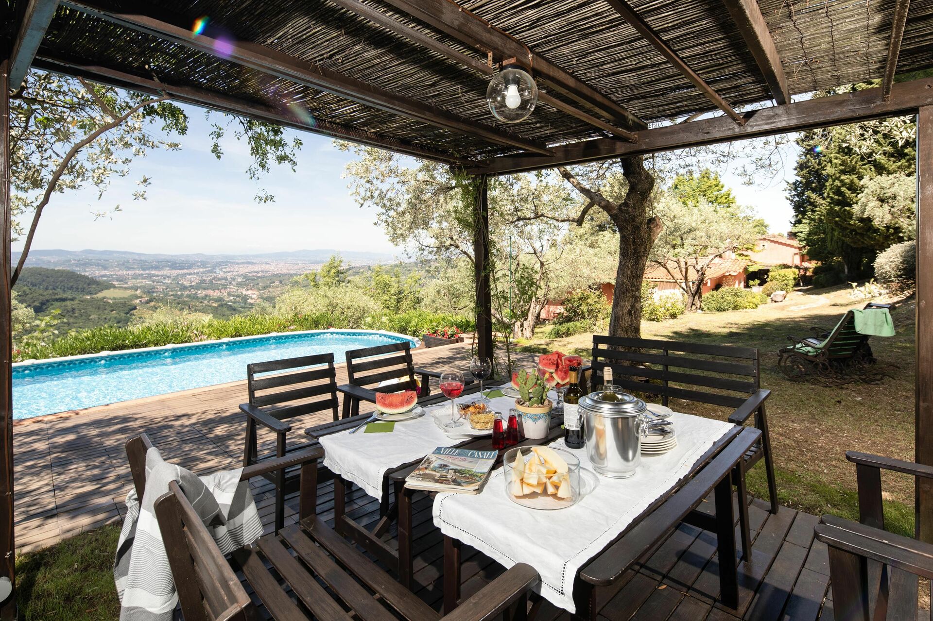 Ferieudlejning La Casa Di San Romolo er en dejlig ejendom (350 m2) som har WIFI, klimaanlæg og privat pool. Ejendommen kan rumme op til ti gæster i fem soveværelser med fem badeværelser. La Casa Di San Romolo er beliggende i Le Case San Romolo, Italien, og kun 17 km fra Firenze i turistområdet "Firenze Og Omegn". I nærliggende byer er der lokale butikker, hvor du kan finde friske råvarer og andre ting. Hvis du ikke kan finde, hvad du har brug for lokalt, er der et indkøbscenter beliggende 8 km fra ejendommen, hvor du kan købe dine madvarer og andre nødvendigheder.