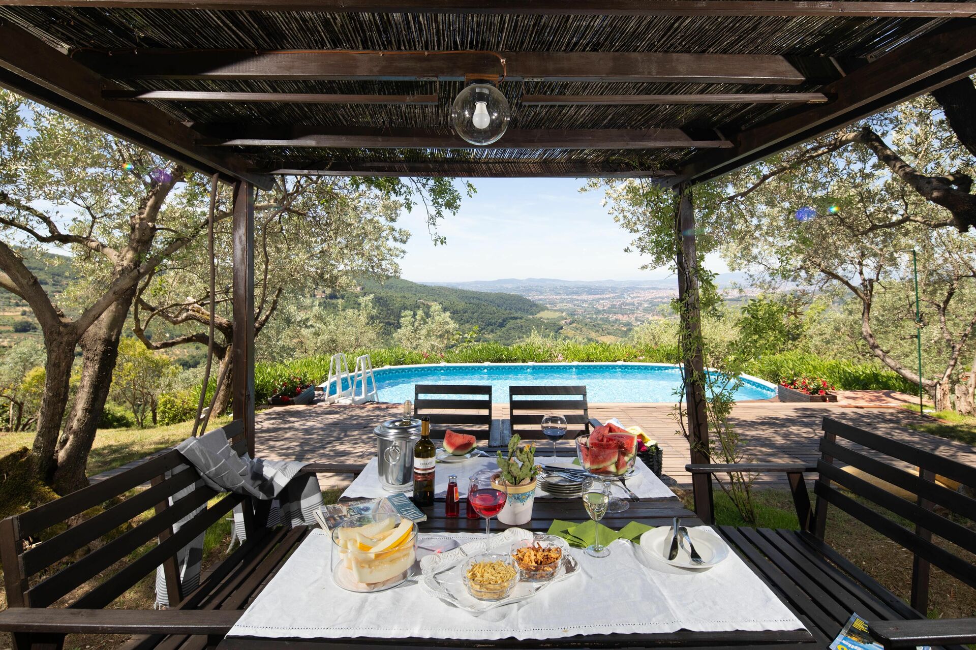 Ved ankomst vil I møde en fin ren velholdt ejendom med udsigt over byen ideel til rolig ferie i Toscana. Til jeres store glæde vil I finde en privat pool, hvor I kan slappe af, mens I nyder en dejlig kold drik efter en travl dag med sightseeing. Der er et køkken inkluderet kaffemaskine, mikroovn, brødrister og køleskab, samt, , samt masser af service og bestik til op til ti personer. Hvis I foretrækker at spise 'al fresco', er der en fuldt møbleret have, hvor I kan nyde vejret, mens I spiser udendørs.