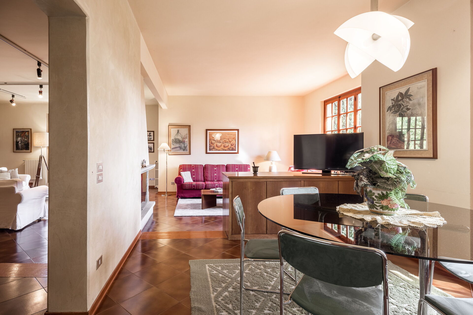 Ved ankomst vil I møde en dejlig ren velholdt ejendom ideel til fredelig ferie i Toscana. Efter en hektisk dag med sightseeing, er det dejligt at nyde lidt tid med venner og familie ved kanten af poolen med et glas vin - det er en perfekt måde at køle ned på sidst på dagen. Udenfor vil I finde barbecue og gårdhave. Der er et køkken inkluderet kaffemaskine og køleskab, samt, , samt masser af service og bestik til op til ni personer. Hvis I foretrækker at spise 'al fresco', er der en fuldt møbleret gårdhave, hvor I kan nyde vejret, mens I spiser udendørs.