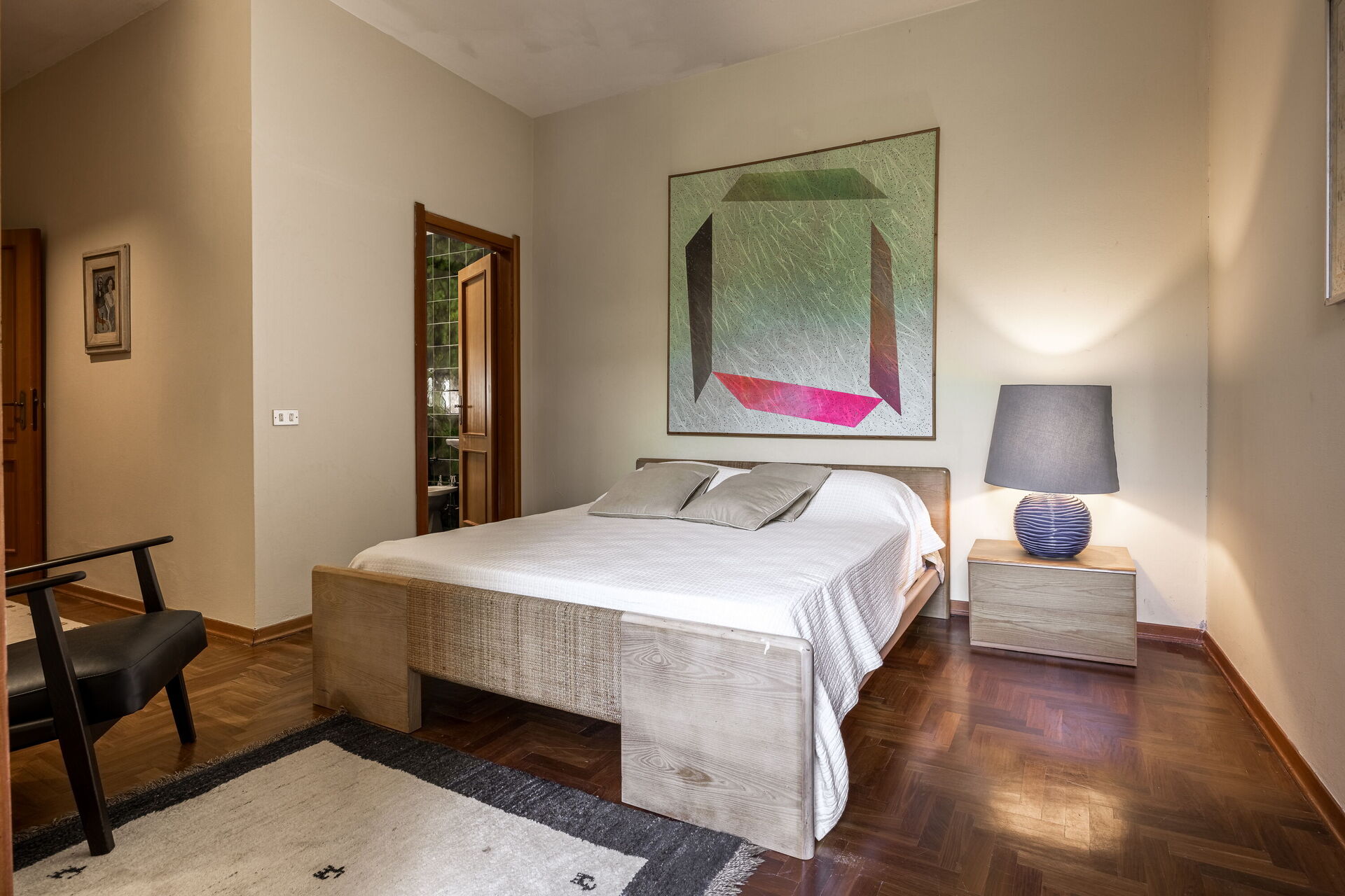 Soveværelse med bad: dobbeltseng, WIFI internet, vask, wc, bidet, badekar.