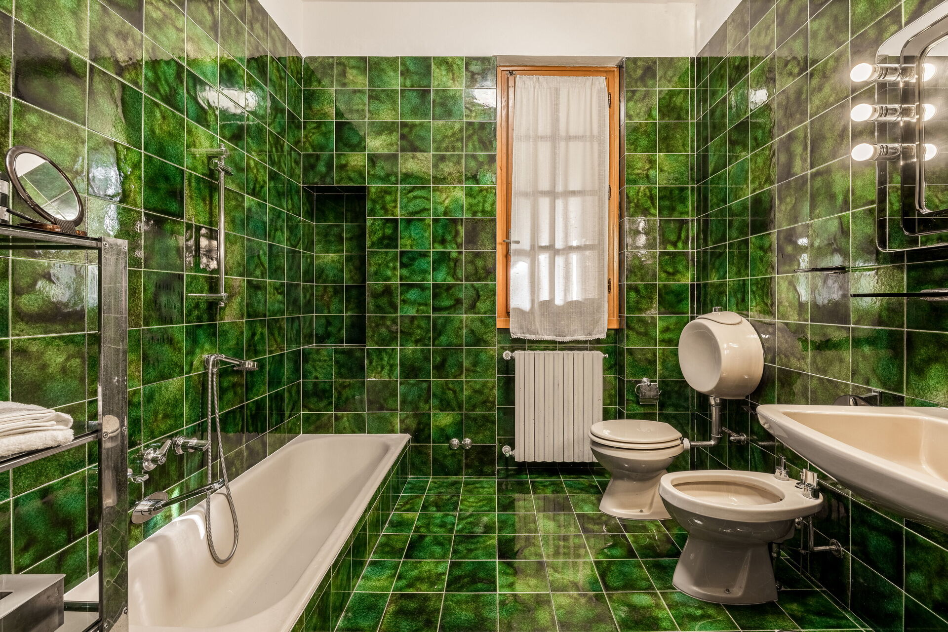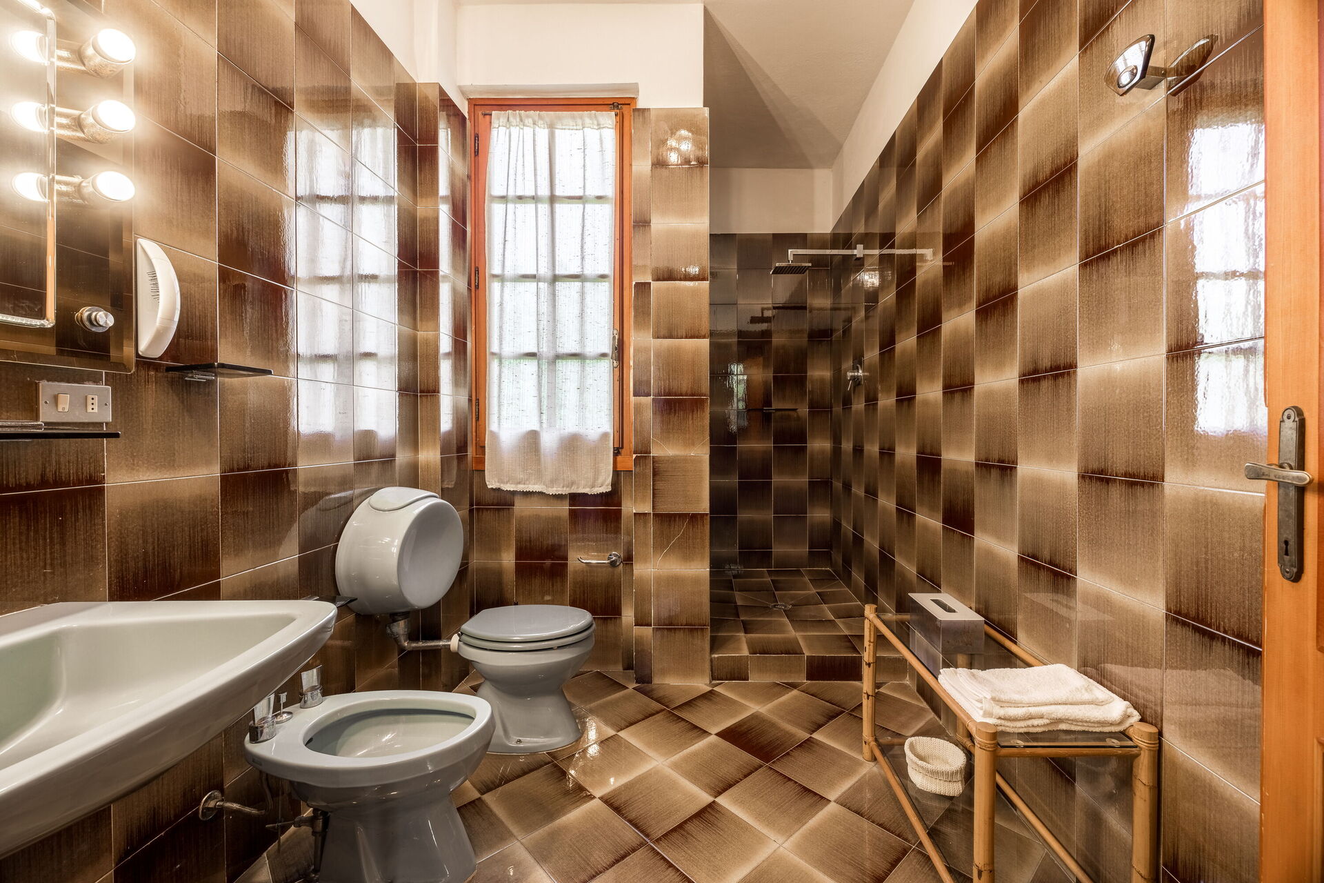 Badeværelse: vask, wc, bidet, bruser.