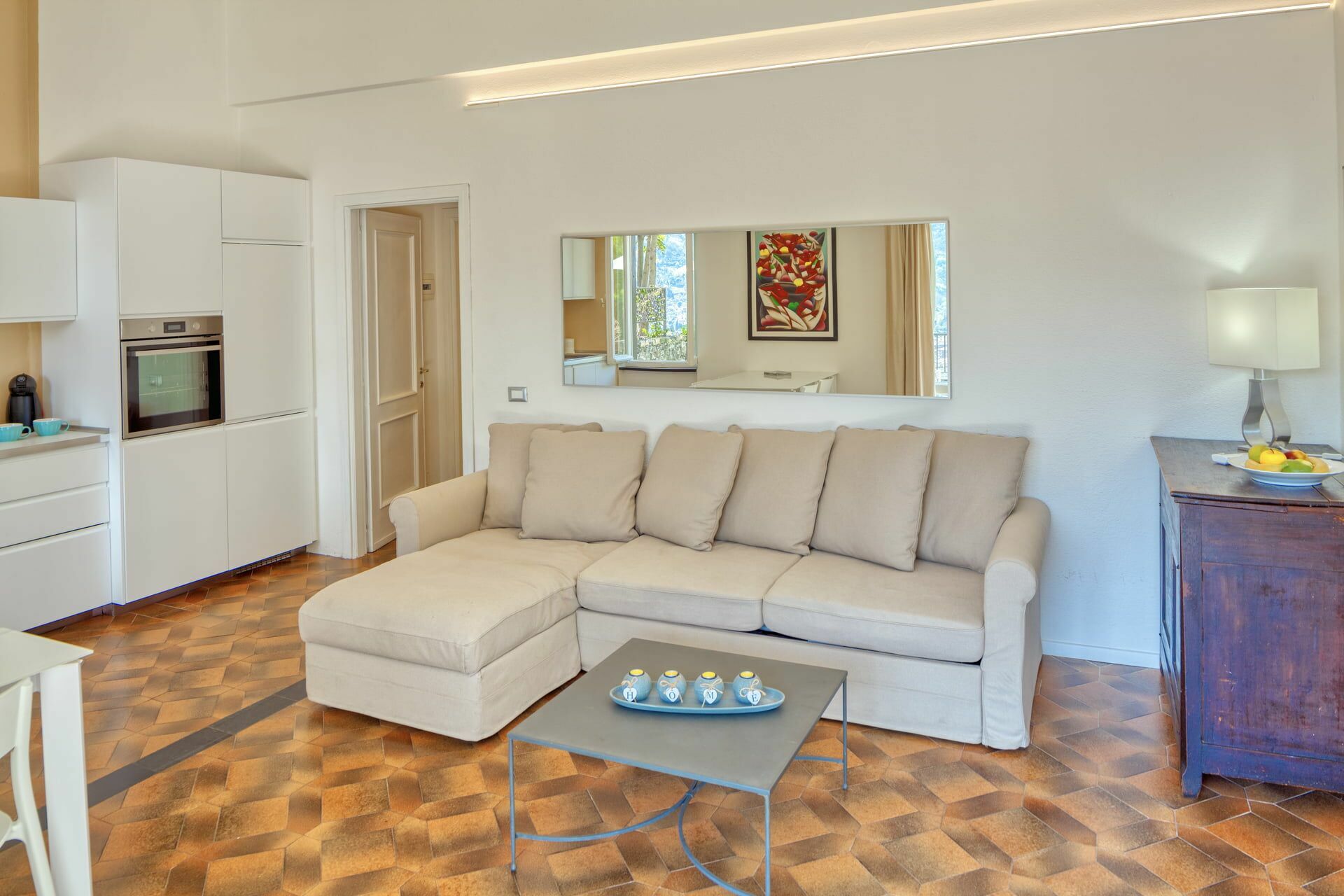 Lejligheden er for nylig blevet renoveret. Den består af: et åbent køkken-stue, et soveværelse med dobbeltseng og en dobbelt sovesofa i stuen.