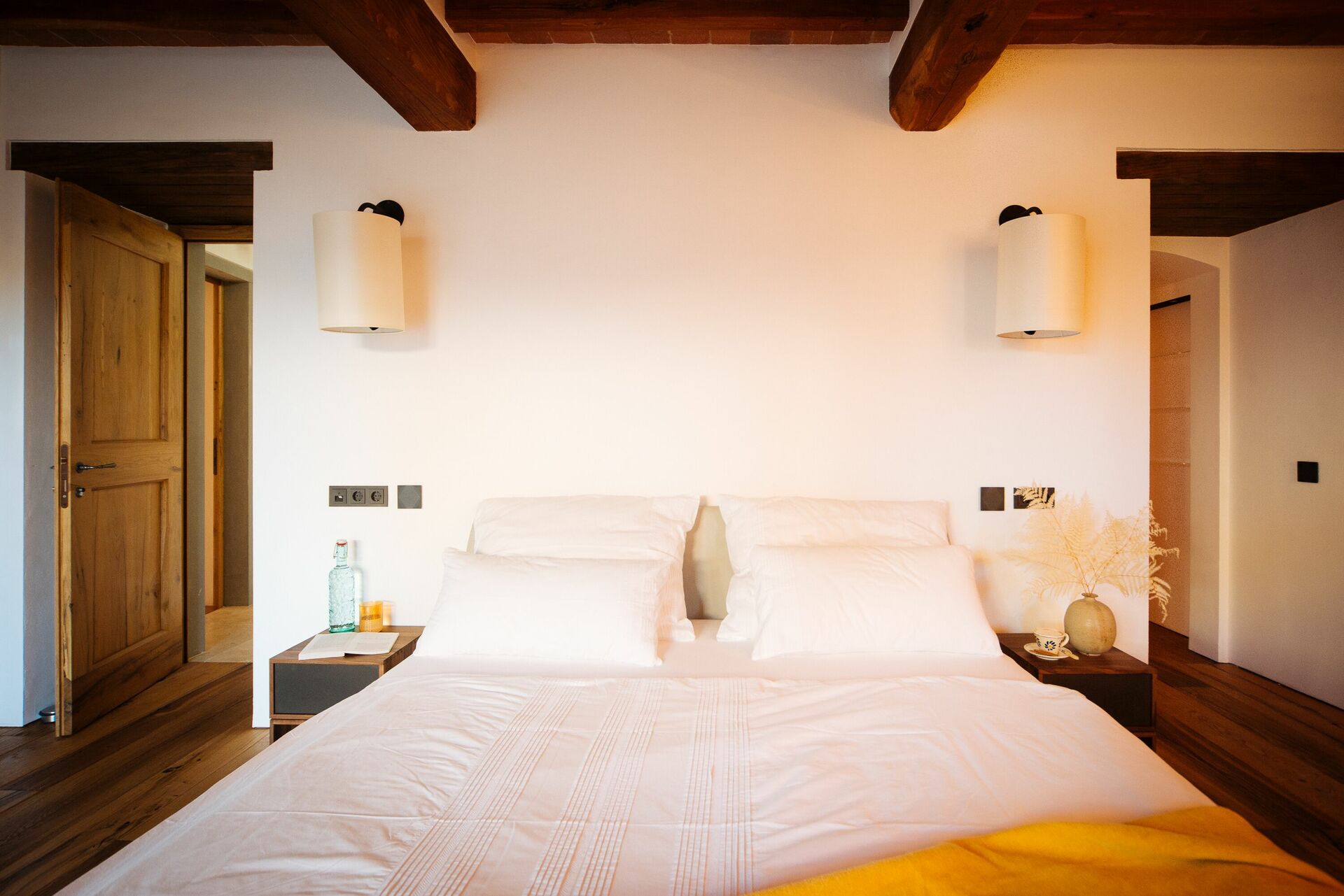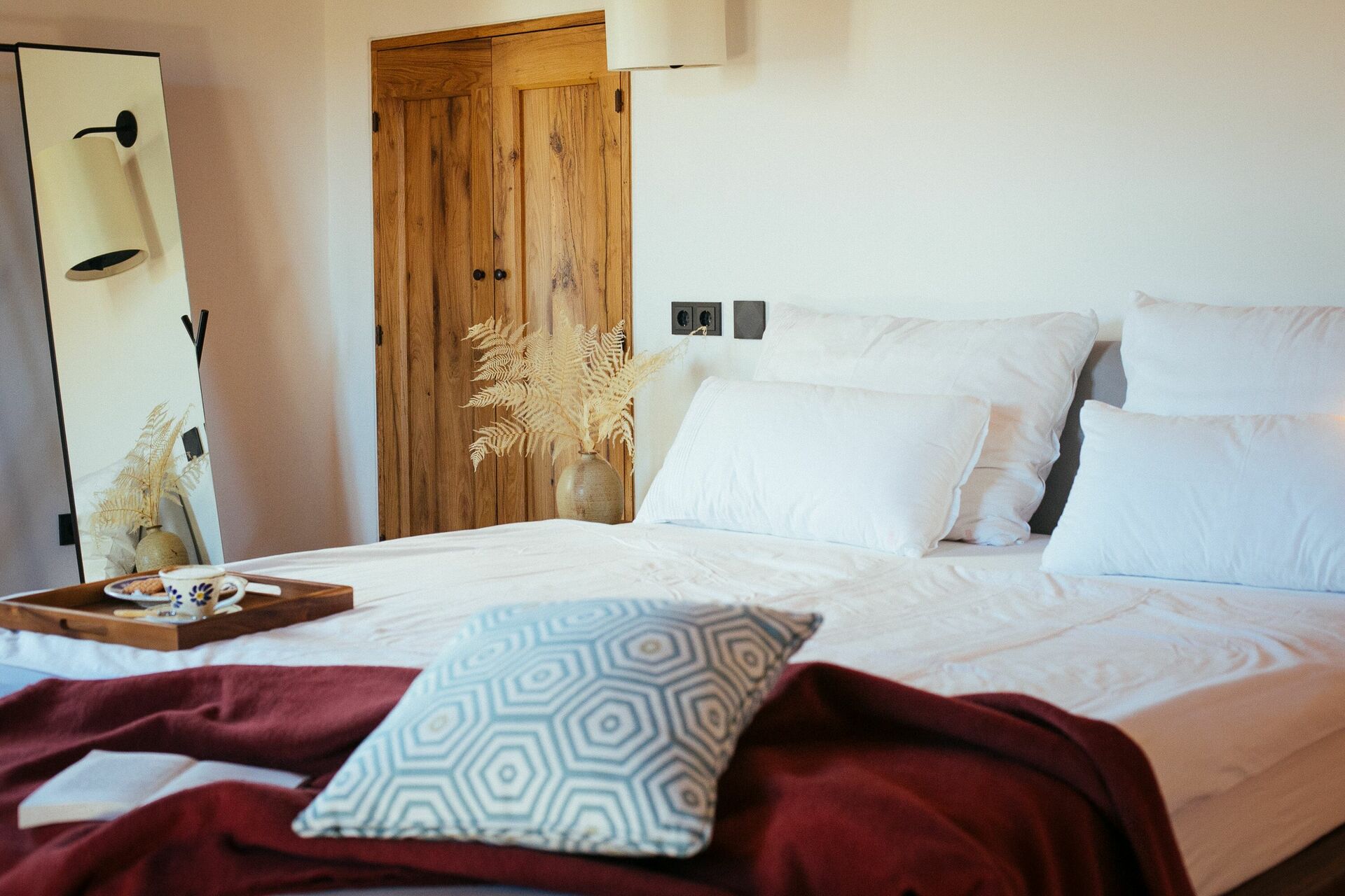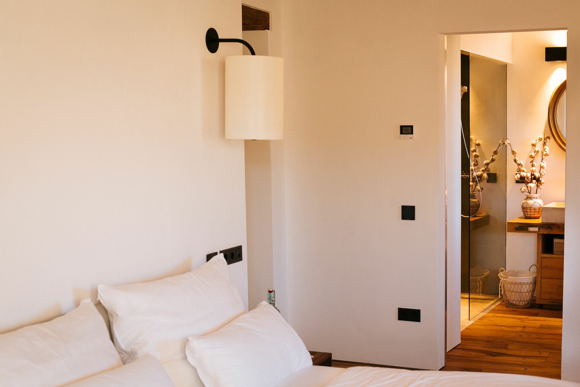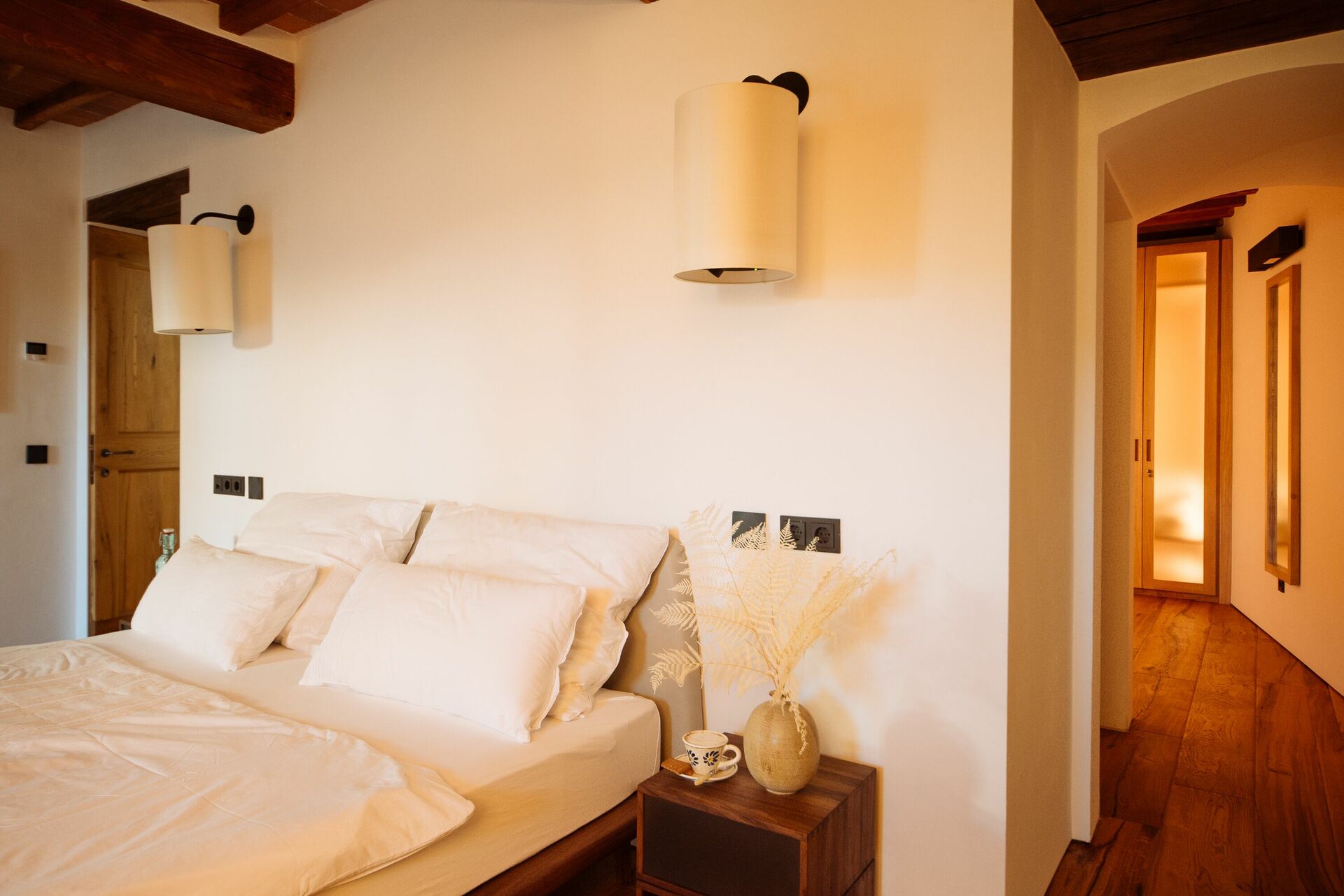 Soveværelse med bad: dobbeltseng, WIFI internet, vask, wc, bidet, bruser.