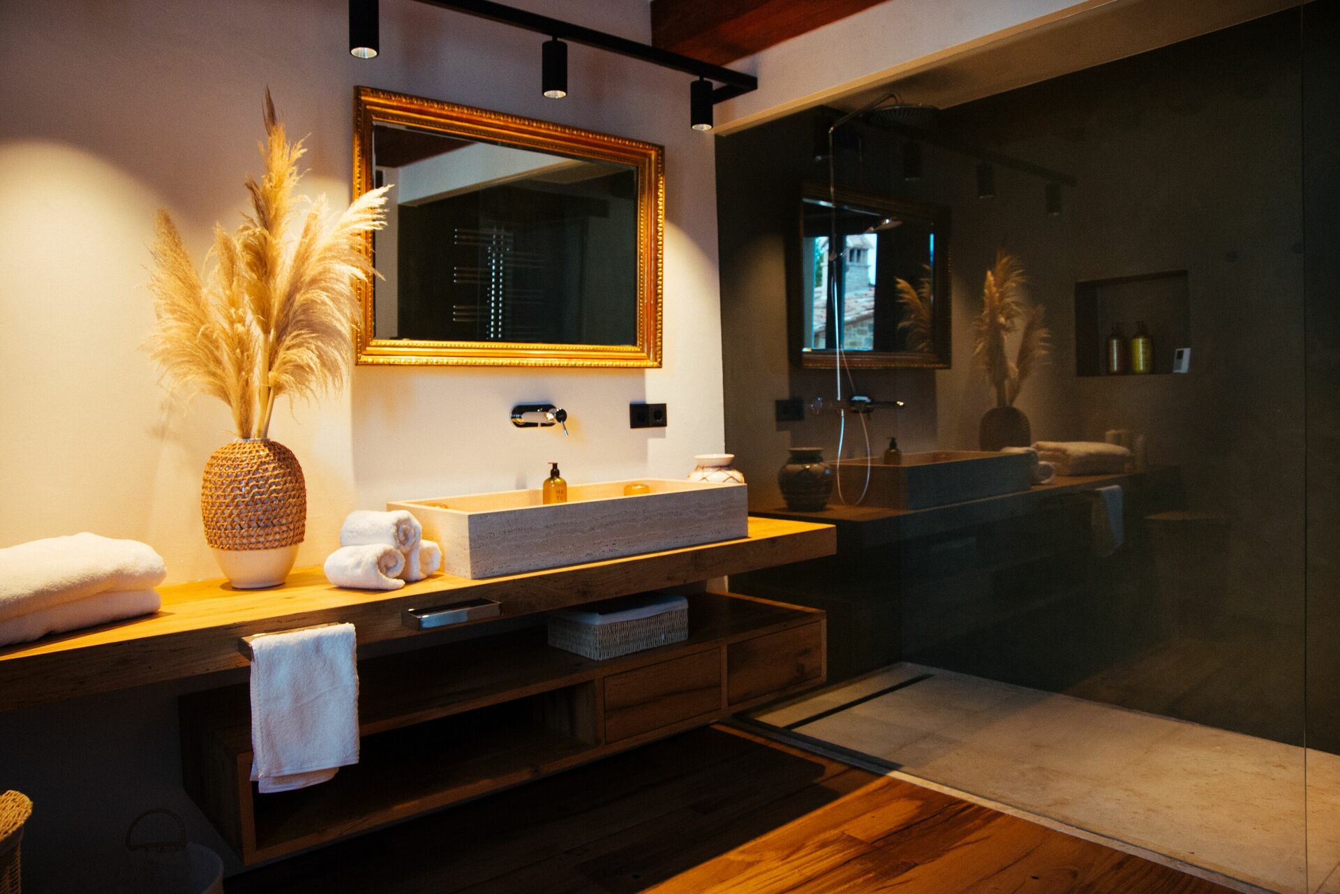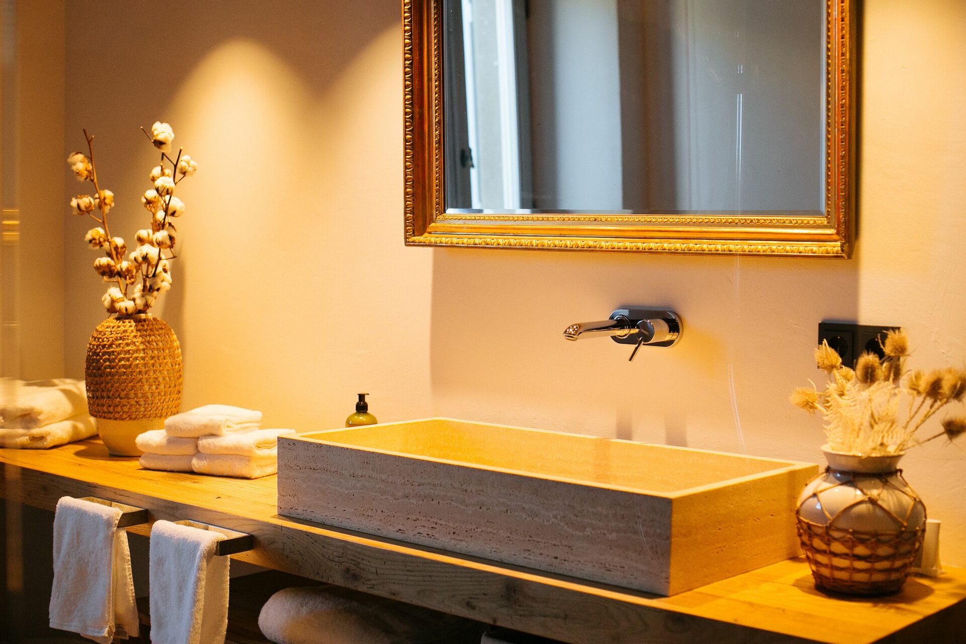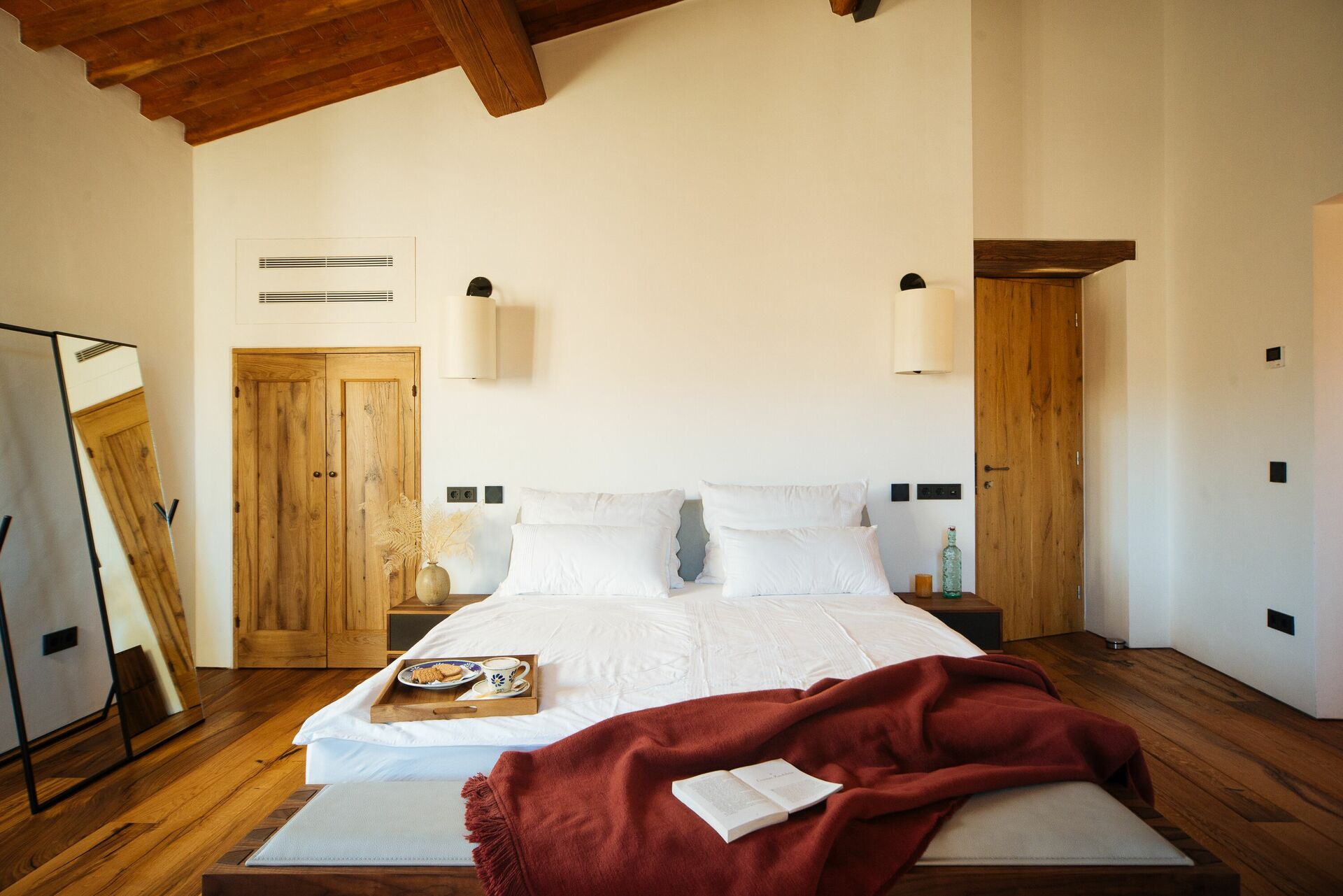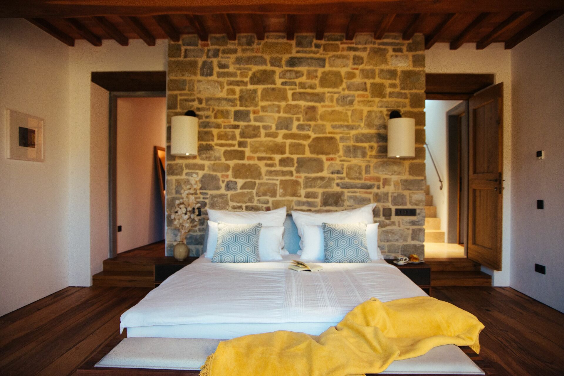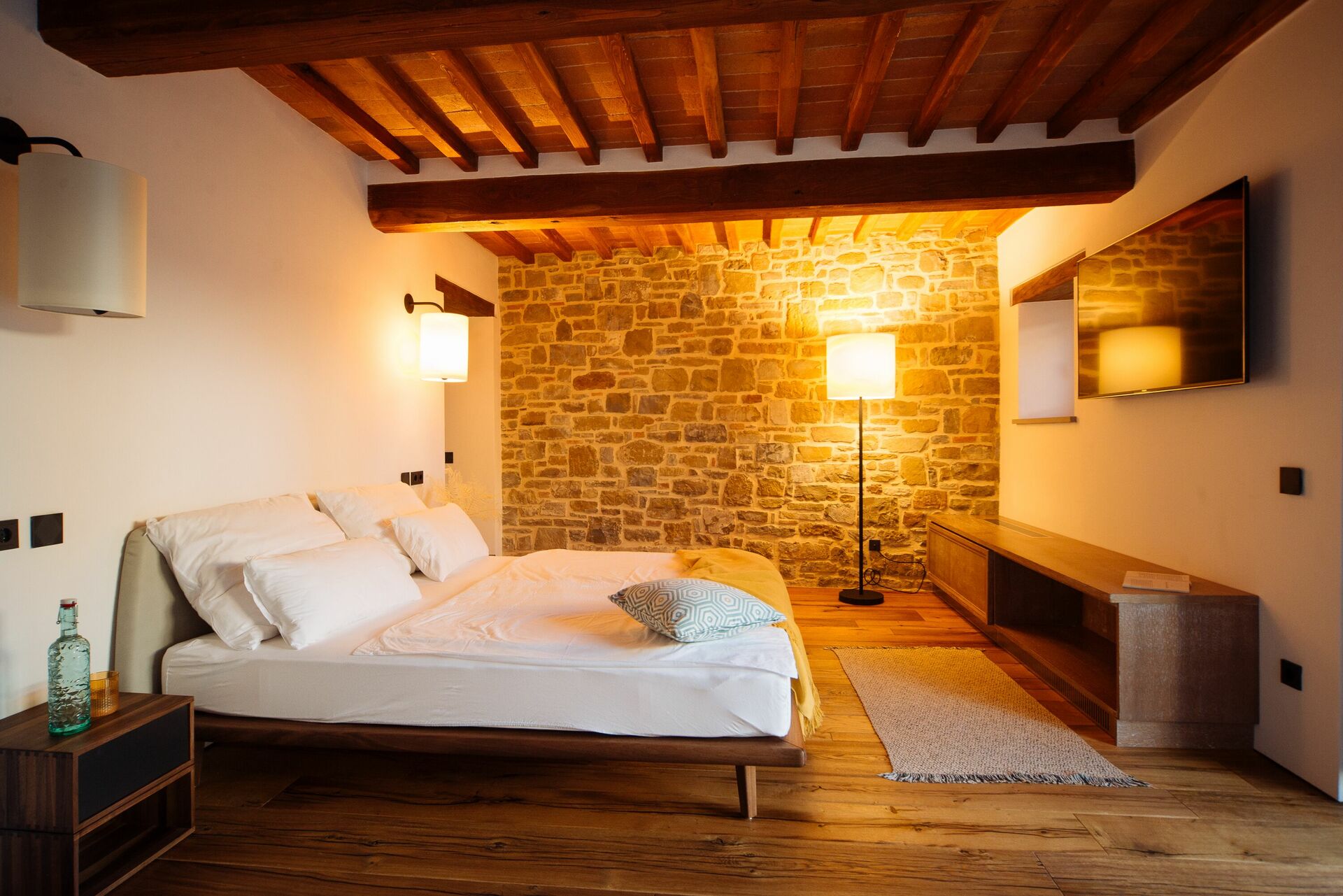 Soveværelse med bad: dobbeltseng, WIFI internet, vask, wc, bidet, bruser.