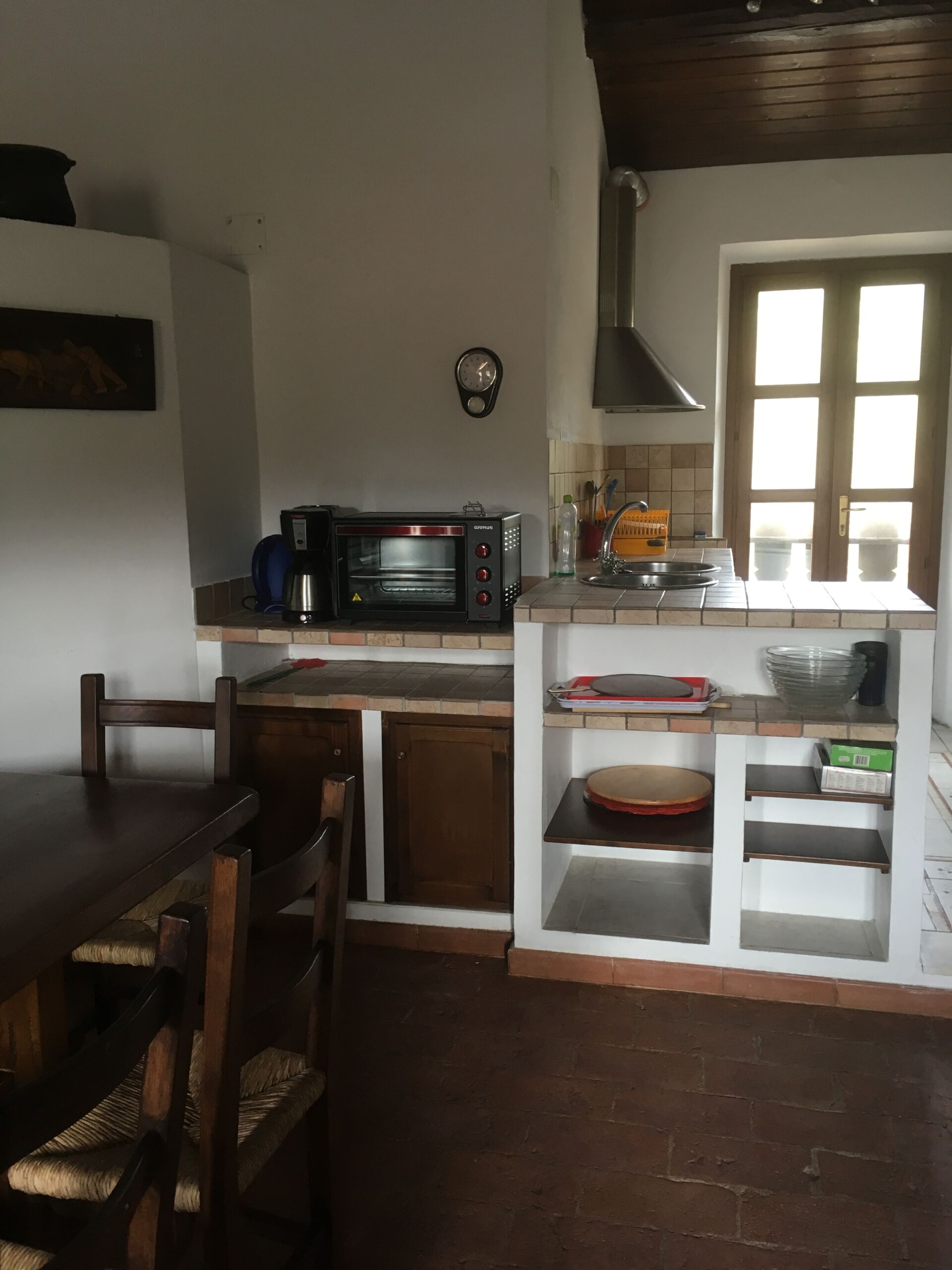 Hvis I nyder at lave mad til familie og venner så er der et veludstyret køkken med kaffemaskine, brødrister, komfur og køleskab , samt masser af service og bestik til op til seks personer.