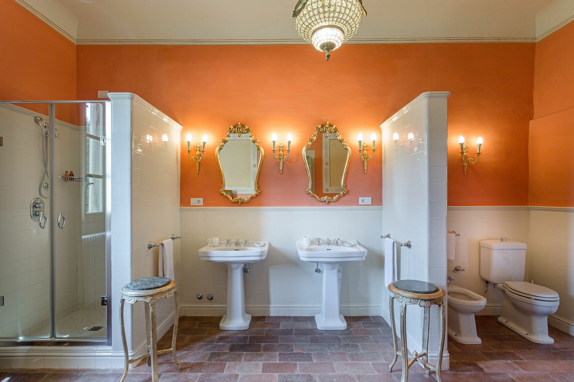 Soveværelse med bad 2: dobbeltseng (bredde: 1.7m, længde: 2m), klimaanlæg, klimaanlæg, dobbeltvask, wc, bidet, badekar, bruser.