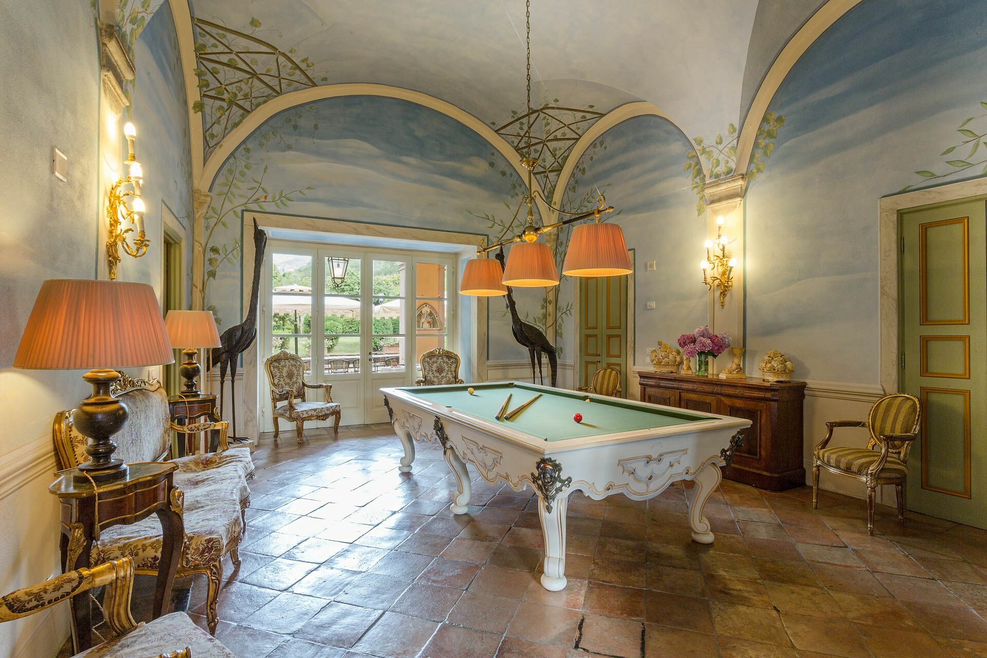 Andet rum: klimaanlæg, billardbord, otte stole.