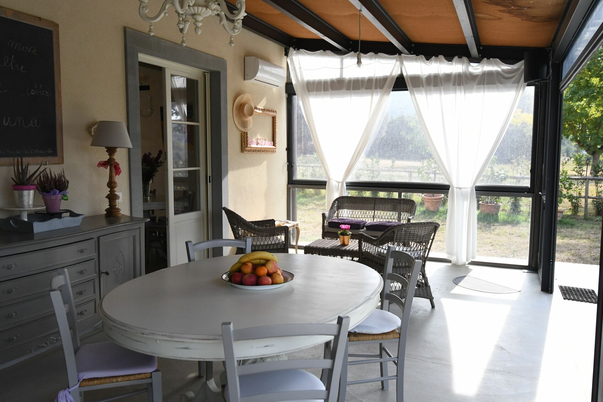 Ved ankomst til Villa Toppello vil I finde en skøn ren og velholdt ejendom ideel til en fredelig ferie i Toscana. Efter en hektisk dag med shopping, er det dejligt at nyde lidt tid med venner og familie ved kanten af poolen med et glas vin - det er en perfekt måde at slappe af på sidst på dagen. At spise med venner og familie er en stor del af den toskanske kultur. Benyt køkkenet til madlavning med lokale produkter, når du er på ferie. Køkkenet indeholder kaffemaskine, brødrister og køleskab, samt, masser af service og bestik til op til syv personer. Spis 'al fresco' som en ægte toskaner. Den fuldt møblerede veranda er det perfekte sted for at nyde sit måltid, familien og det dejlige toskanske vejr.