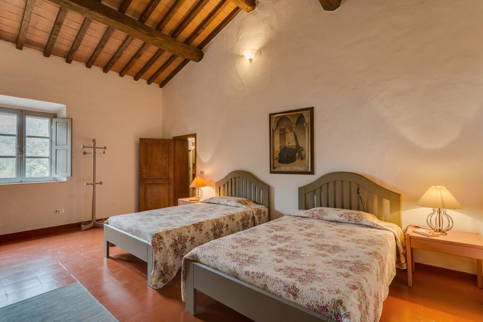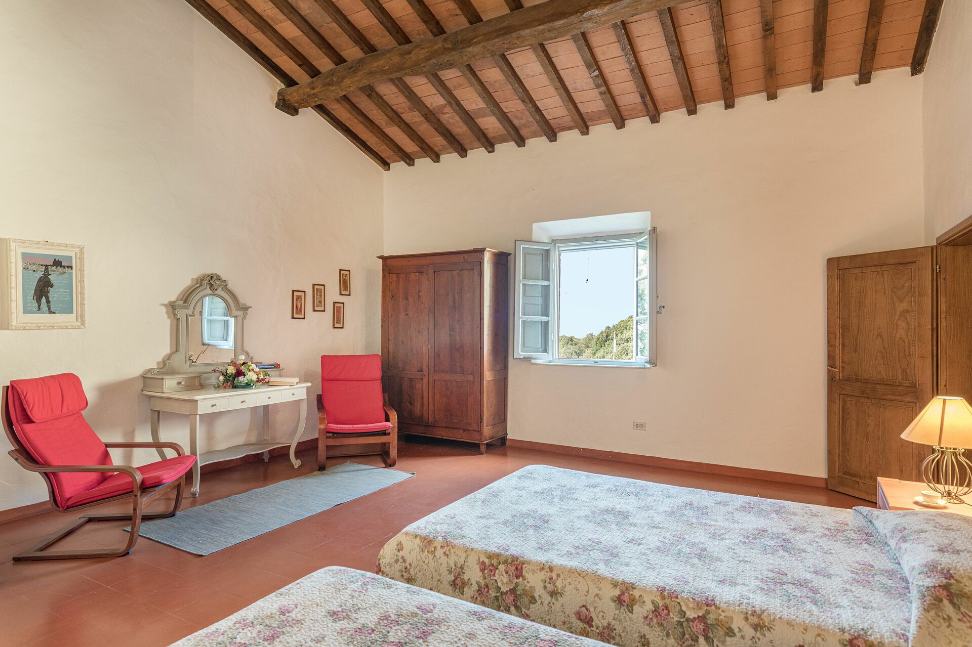 Soveværelse 1: to enkeltsenge, WIFI internet, lænestol, skrivebord.
