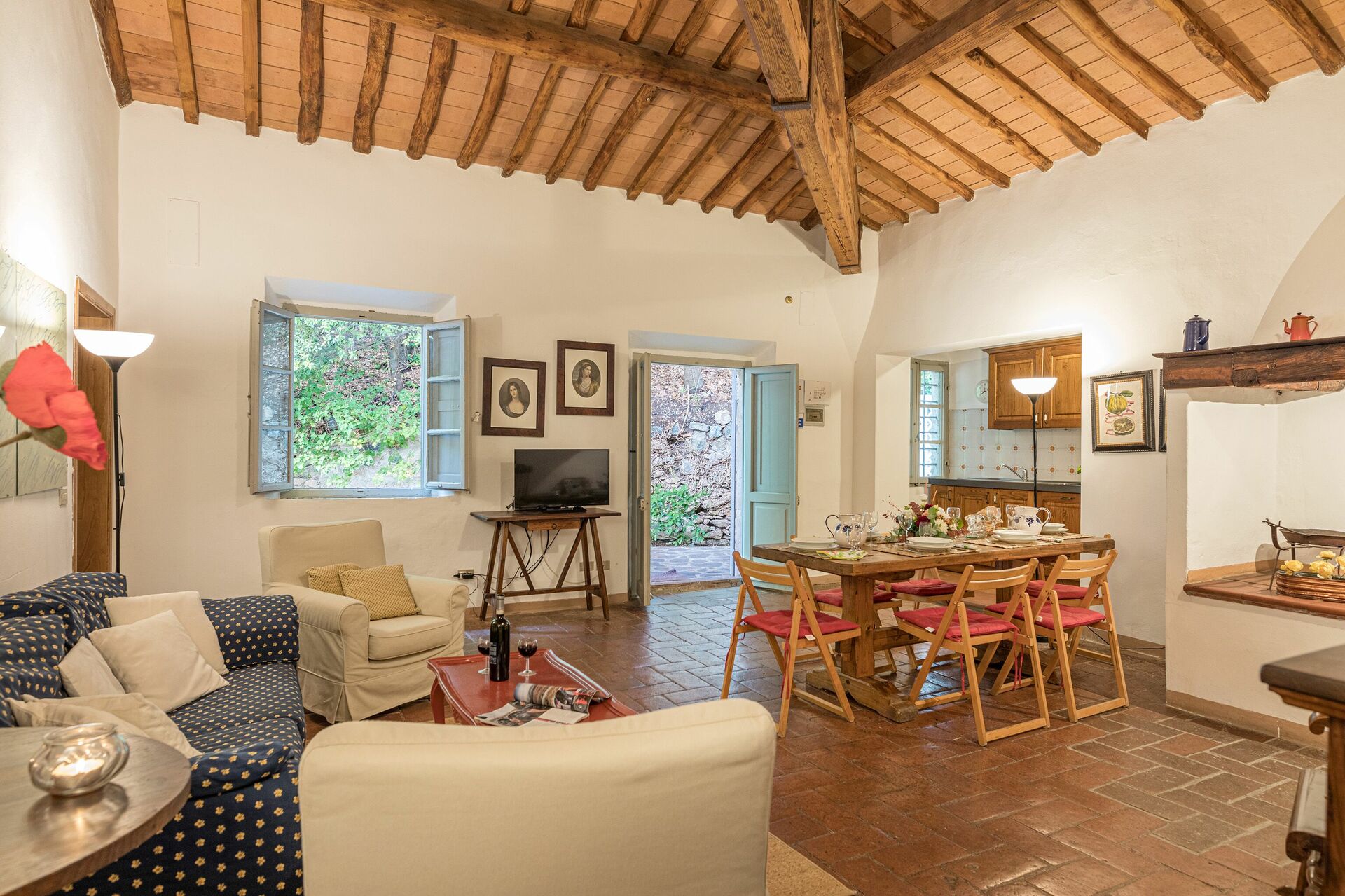 At nyde et måltid med venner og familie er en stor del af den toskanske kultur. Benyt det velekviperede køkken til madlavning med lokale produkter, når du er på ferie. Køkkenet indeholder kaffemaskine, mikroovn, brødrister, komfur og køleskab, samt masser af service og bestik til op til seks personer. Hvis I foretrækker at spise 'al fresco', er der en fuldt møbleret gårdhave, hvor I kan nyde vejret, mens I spiser udendørs.