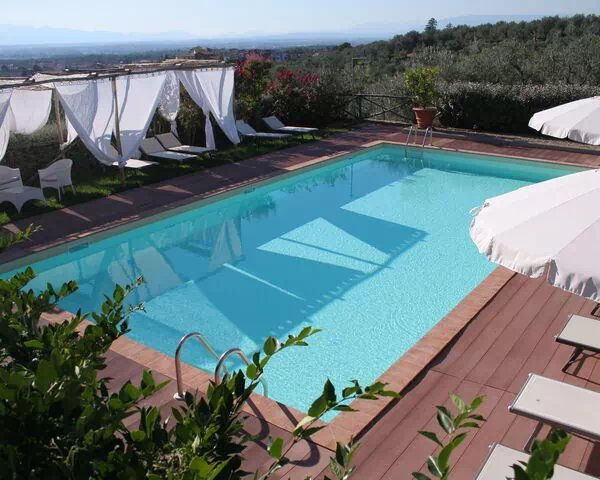Poolen deles med andre gæster: Ejendommen består af 6 soveværelser (B&B) og en separat lejlighed, som er Il Fienile.