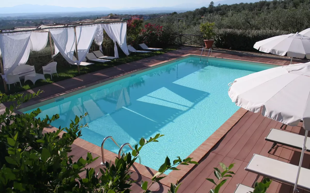 Poolen deles med andre gæster: Ejendommen består af 6 soveværelser (B&B) og en separat lejlighed, som er Il Fienile.