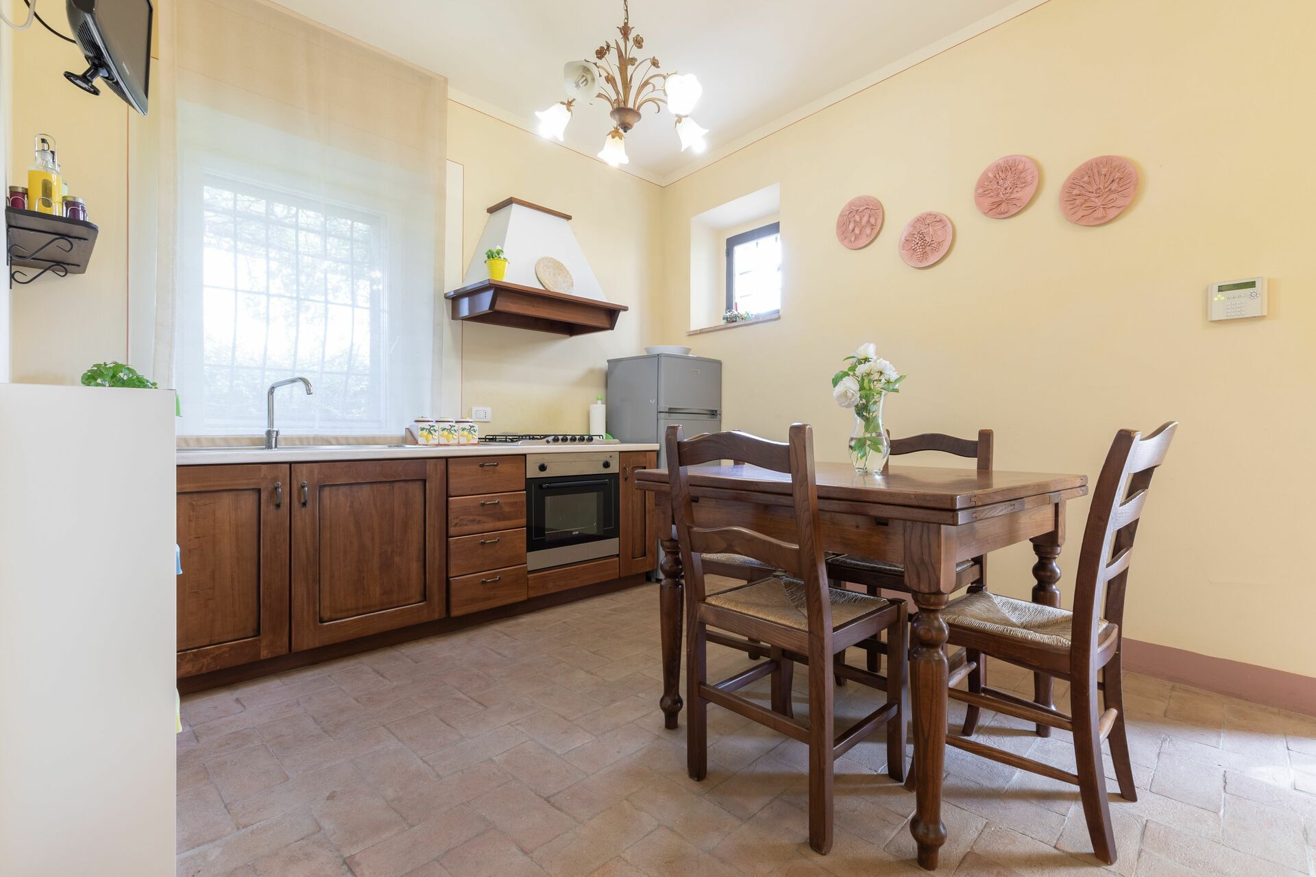 Ved ankomst vil I blive budt velkommen af ejeren eller repræsentanten og I vil finde en dejlig ren og velholdt ejendom med udsigt over bjergene og bakkerne ideel til en rolig ferie i Toscana. Uanset hvordan I tilbringer dagene - med museumsbesøg, shopping, sightseeing eller bare ved at køre rundt på landet, så kan I køle ned med familie og venner ved poolen, når I kommer hjem, hvilket er en perfekt måde at afslutte endnu en dejlig dag på i Toscana. Til jeres store nydelse er der på ejendommen barbecue, jacuzzi og legeplads. Hvis I nyder at lave mad til familie og venner så er der et veludstyret køkken inkluderet kaffemaskine, mikroovn, brødrister, komfur og køleskab, samt, , samt masser af service og bestik til op til fire personer. Hvis I foretrækker at spise 'al fresco', er der en fuldt møbleret have, hvor I kan nyde vejret, mens I spiser udendørs.