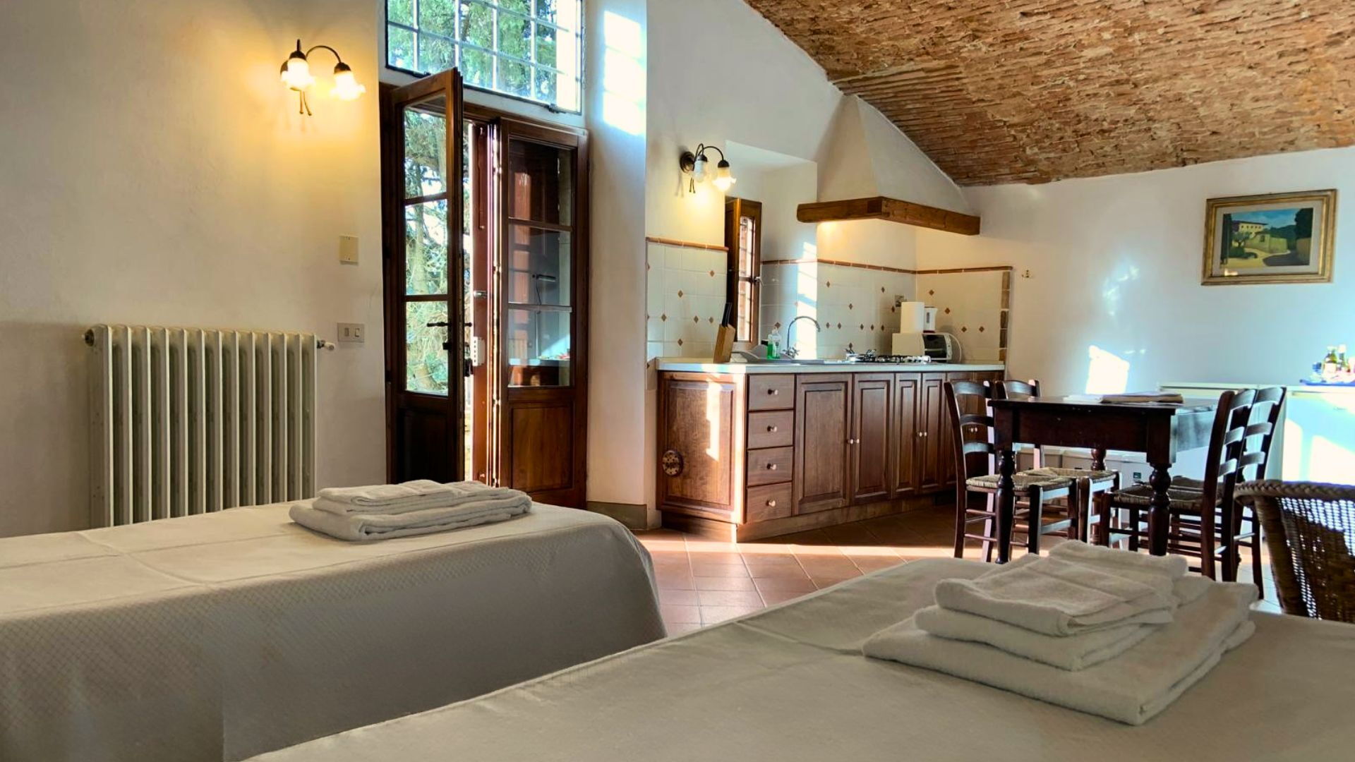 Le Fonti 1 (60 m2) er en 1-soveværelses enhed med 1 badeværelse, som er bygget i 1 niveau og kan huse op til fire personer. Nogle værelser har klimaanlæg (se værelsesdetaljer herunder).