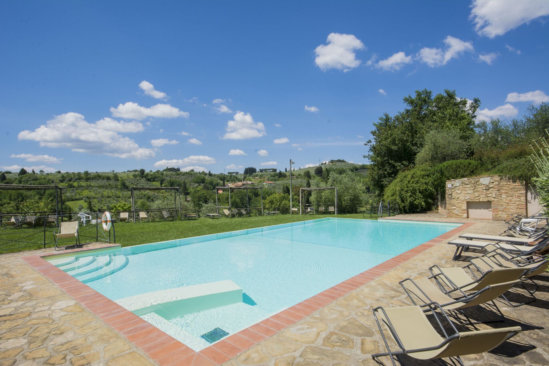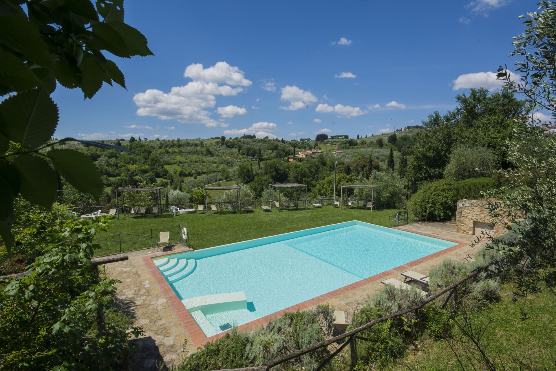 Ferievilla opdelt i enheder med klimaanlæg, pool, WIFI, TV, balkon, panorama udsigt, nær ved Firenze