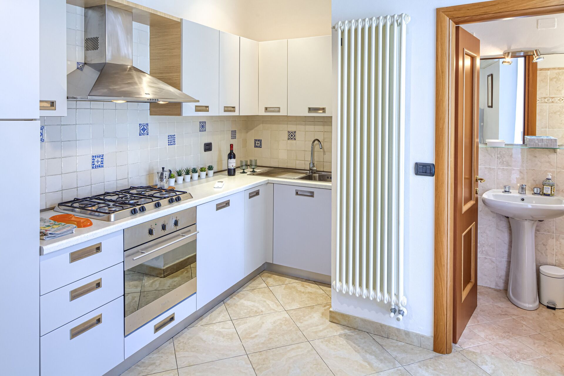 Lejlighed "MAFALDA n°1", på omkring 35 kvm, består af et soveværelse med dobbeltseng, et køkken med bord og stole, et badeværelse, en meget lille balkon med udsigt over den indre gårdhave.