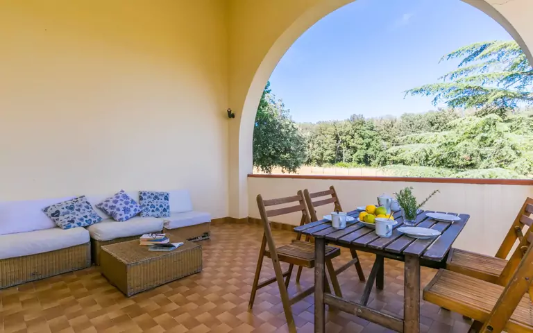Hyggeligt, rustikt hus "I Limoni", på 2 etager, omgivet af græsmarker og marker. Ejendom bestående af hovedhus og udhus, 3.5 km fra bymidten af Capalbio, solrige beliggenhed, 50 m fra skovbryn, 9 km fra havet, i det grønne. Til alene benyttelse: smuk, velplejet have 700 m2 (indhegnet) med græsplane og planter. Lysthus, havemøbler, grill, parkeringsplads (overdækket) ved huset. Indkøbsforretning 3.5 km, fødevarebutik 3.5 km, supermarked 6 km, restaurant 3.5 km, togstation "Capalbio Scalo" 6 km, sandstrand "Macchiatonda" 8 km, varmtvandsbad "Saturnia" 44 km. Golfbane (18 hul) 25 km. Nærliggende attraktioner: Giardino dei Tarocchi 7 km, Feniglia 18 km, Orbetello 21 km, Monte Argentario 25 km. Bemærk venligst: bil anbefales. Residence med elektriske porte.