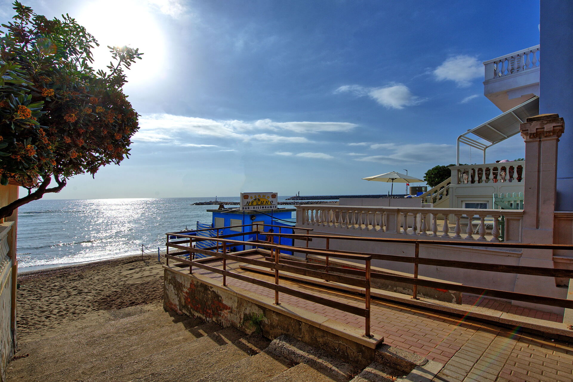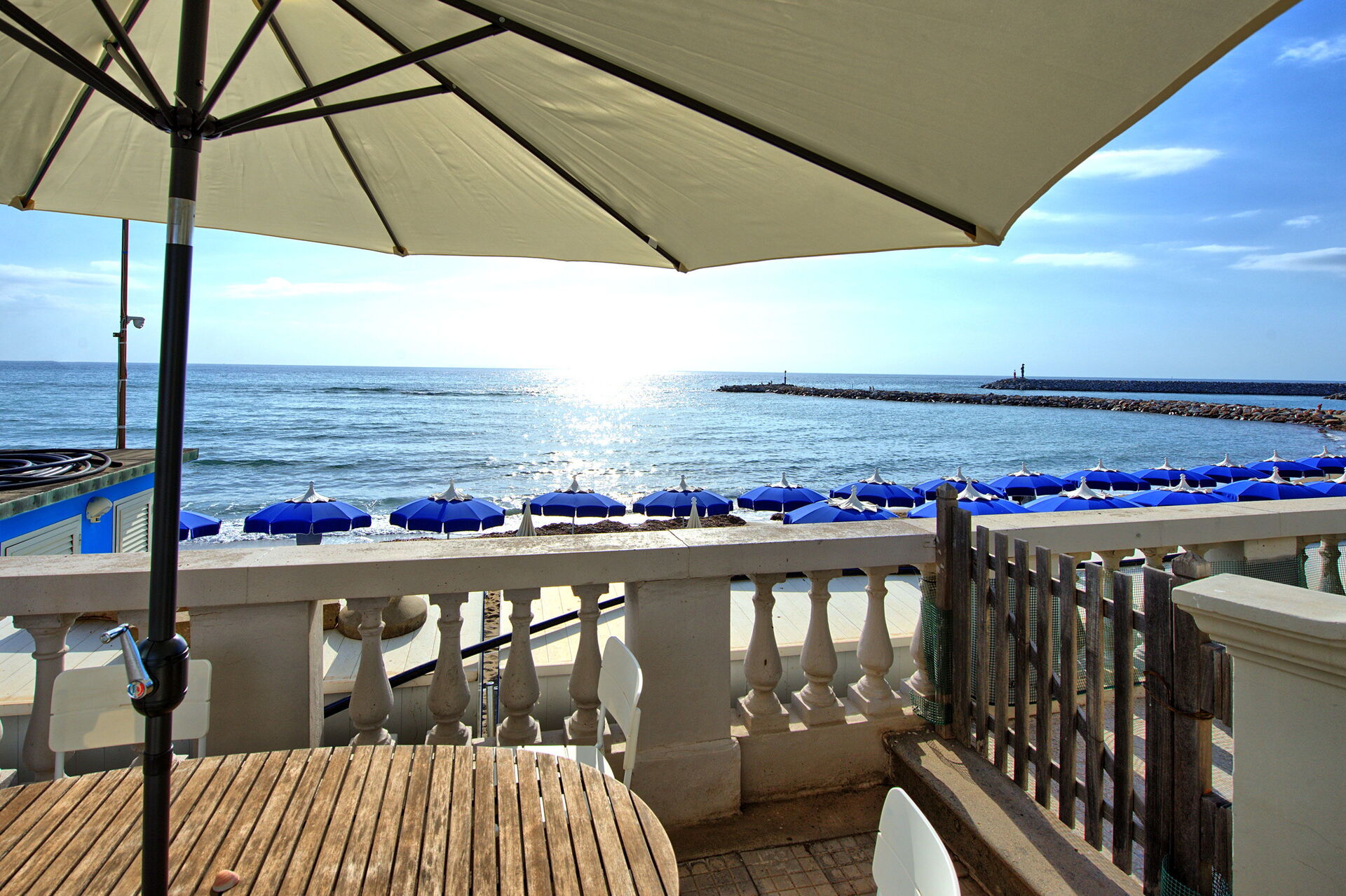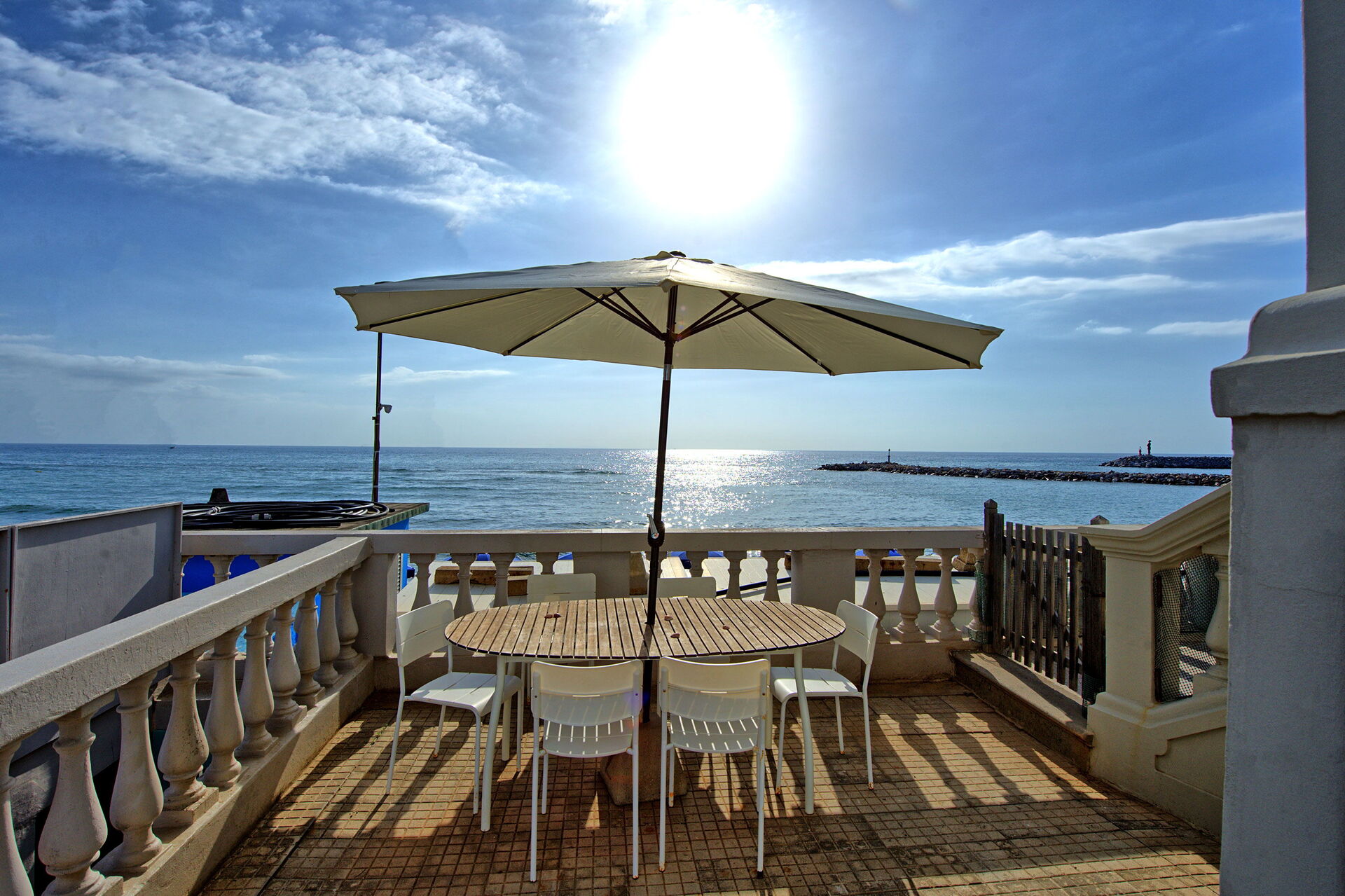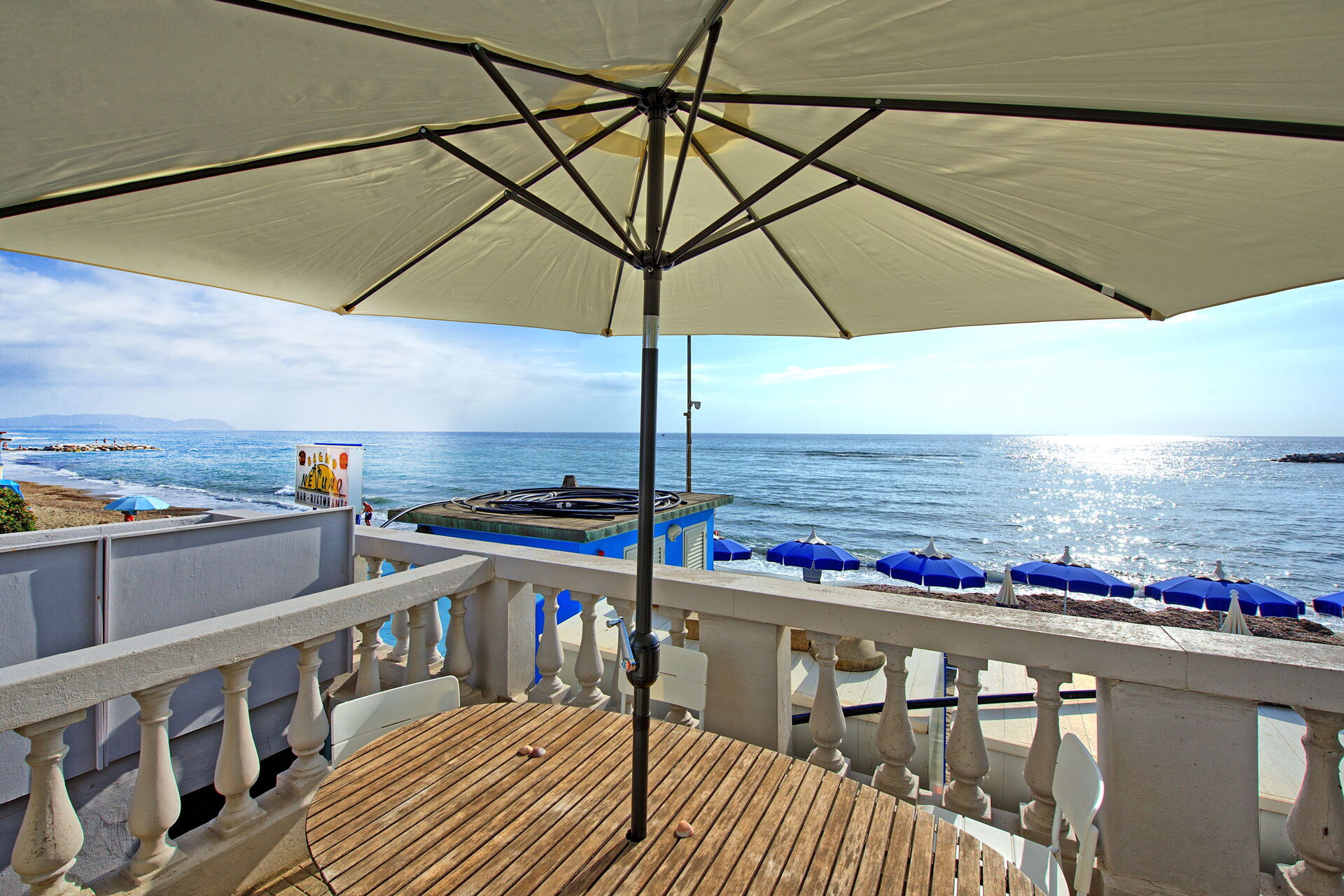 Terrassen har direkte adgang til stranden, hvor der er en strandklub. I sæsonen fra juni til slutningen af september kan gæster i lejligheden låne 2 liggestole og en parasol gratis.