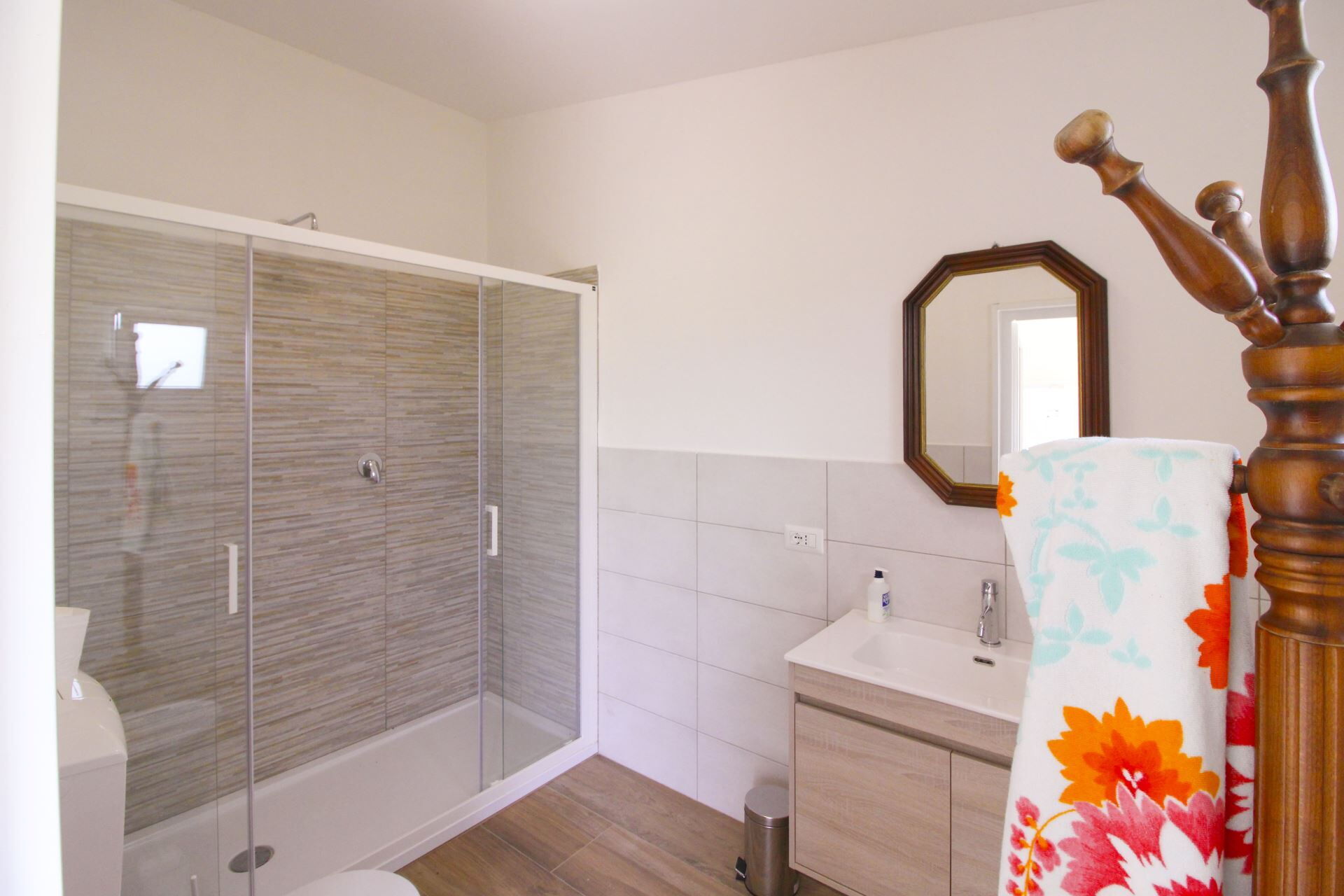 FIRST FLOOR: with access from external staircase with loggia: kitchen-dining room, large and bright living-dining room with sofas and TV. Three double bedrooms, two bathrooms with shower. Small sitting room with double sofa bed.