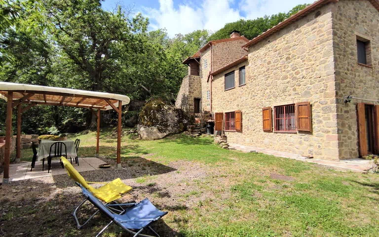 Denne rustikke villa ligger i hjertet af Toscanas landdistrikt ved Roccastrada i Italien, 1,8 km over landsbyen Sassofortino. Ejendommen blev renoveret i 2022 og strækker sig over mere end 5 hektar naturlig grund omgivet af træer og fuldstændig ro. Området omfatter en naturlig have og en eng, som skaber et autentisk landligt tilflugtssted. Villaen er en treetagebygning, der ligger 1,5 km fra hovedvejen og tilgås via en stejl og kuperet bjergvej.
