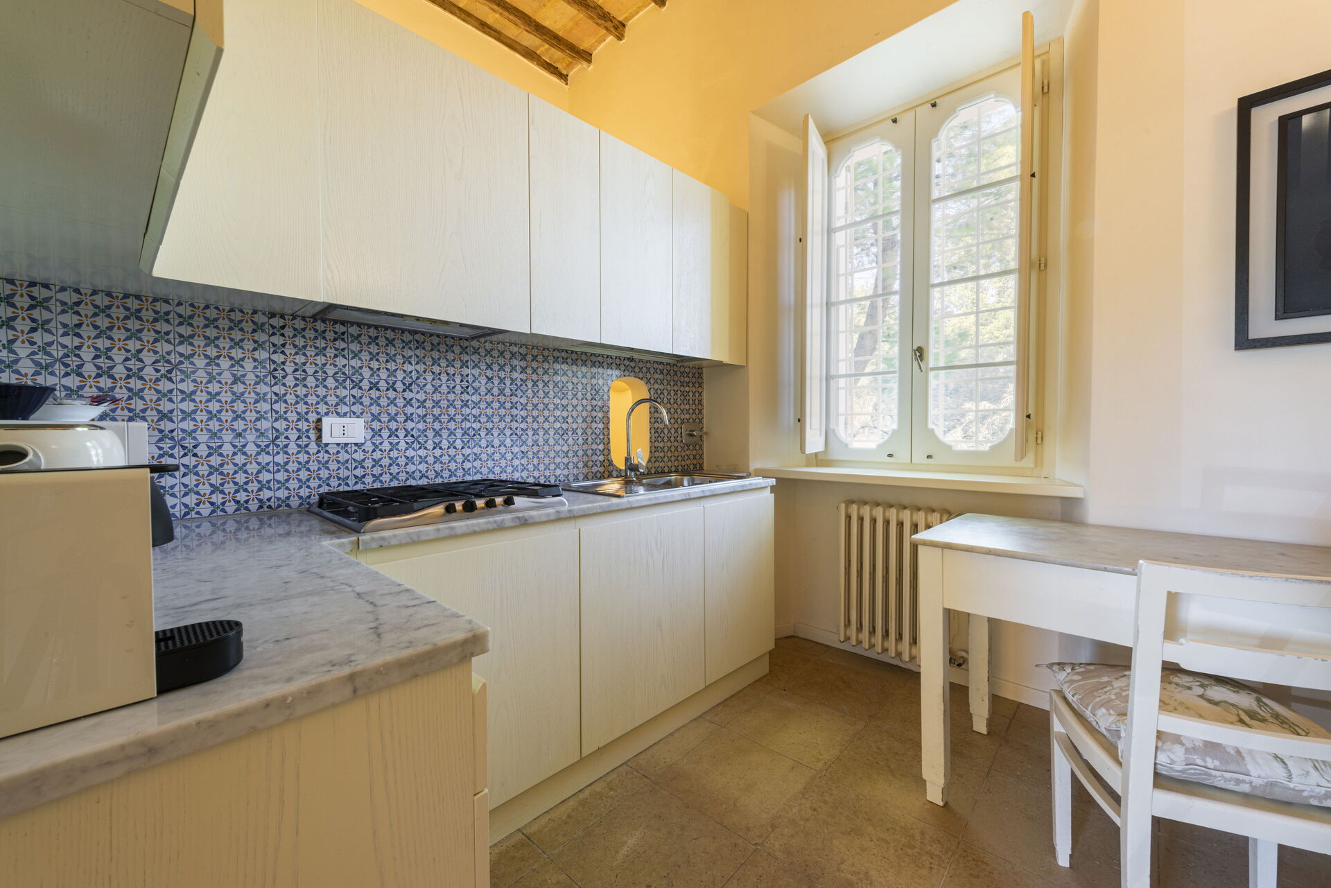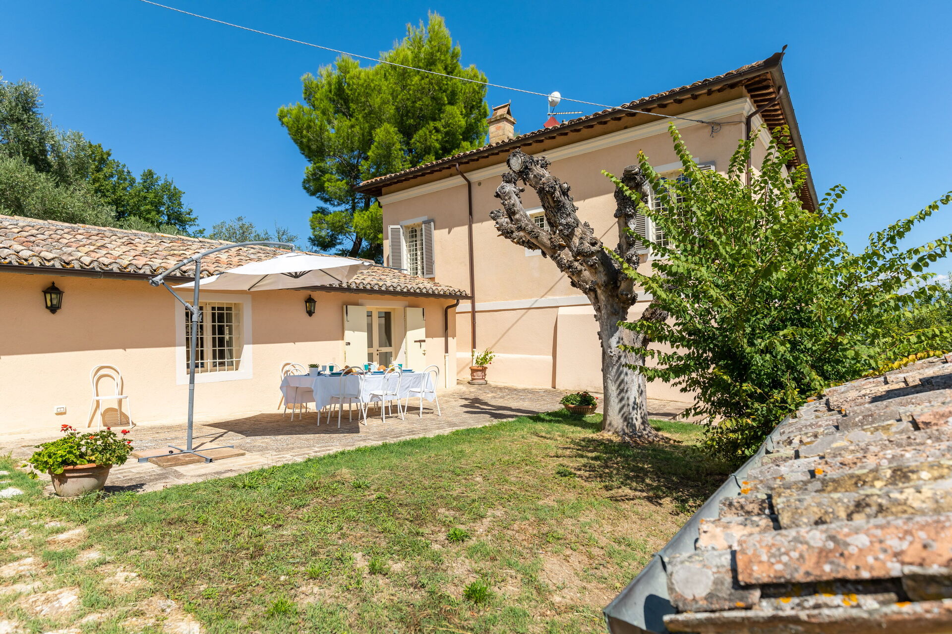 Når I ankommer, til Villa Le Grazie vil I finde en dejlig ren og velholdt ejendom med udsigt over bakkerne ideel til en afslappende ferie i Umbrien. Uanset hvordan I tilbringer dagene - med shopping, museumsbesøg, sightseeing eller bare ved at køre rundt på landet, så kan I slappe af med familie og venner ved poolen, når I kommer hjem, hvilket er en perfekt måde at afslutte endnu en dejlig dag på i Umbrien. At spise med venner og familie er en kæmpe del af den italienske kultur. Benyt køkkenet til madlavning med lokale produkter, når du er på ferie. Køkkenet indeholder kaffemaskine, mikroovn og brødrister, samt, masser af service og bestik til op til 14 personer. Spis 'al fresco' som en ægte italienner. Den fuldt møblerede have er det ideele sted for at nyde sit måltid, familien og det dejlige italienske vejr.