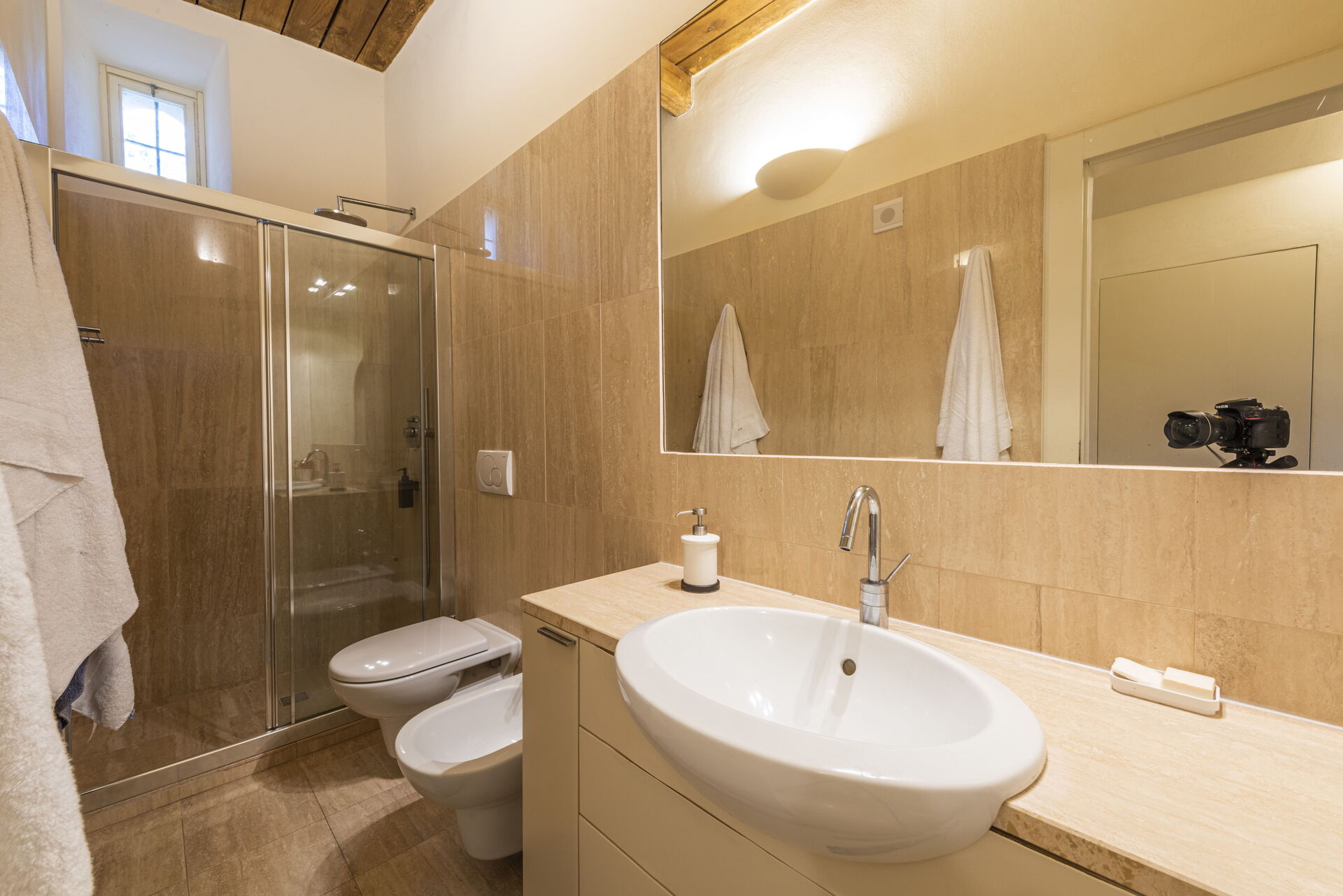 Badeværelse: vask, wc, bidet, bruser.