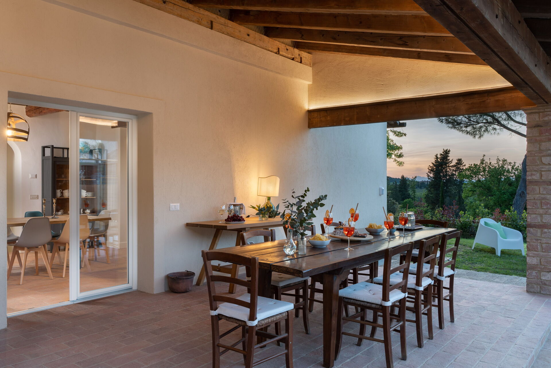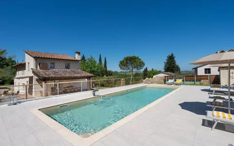 Når I ankommer, vil I møde en fin ren velholdt ejendom med udsigt over bakkerne ideel til behagelig ferie i Toscana. Uanset hvordan I tilbringer dagene - med shopping, museumsbesøg, sightseeing eller bare ved at køre rundt på landet, så kan I slappe af med familie og venner ved poolen, når I kommer hjem, hvilket er en perfekt måde at afslutte endnu en dejlig dag på i Toscana. Udendørs vil I finde grill og gårdhave. At spise med venner og familie er en stor del af den toskanske kultur. Benyt det velekviperede køkken til madlavning med lokale produkter, når du er på ferie. Køkkenet indeholder kaffemaskine, komfur og køleskab, samt, masser af service og bestik til op til ti personer.