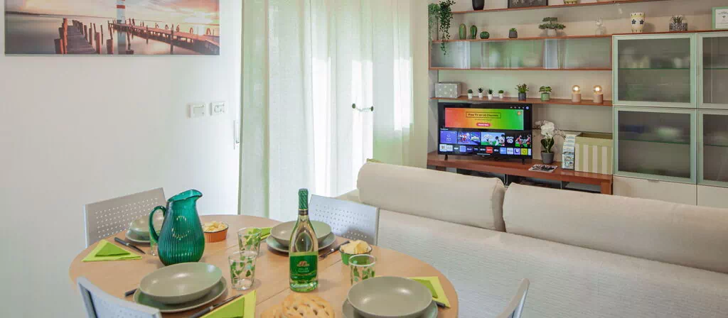 Hurtig Wi-Fi, 43-tommer 4K Smart-TV, satellit-tv-kanaler: Italienske kanaler i HD (TivùSat) og de vigtigste free-to-air internationale kanaler (fra Astra satellit).