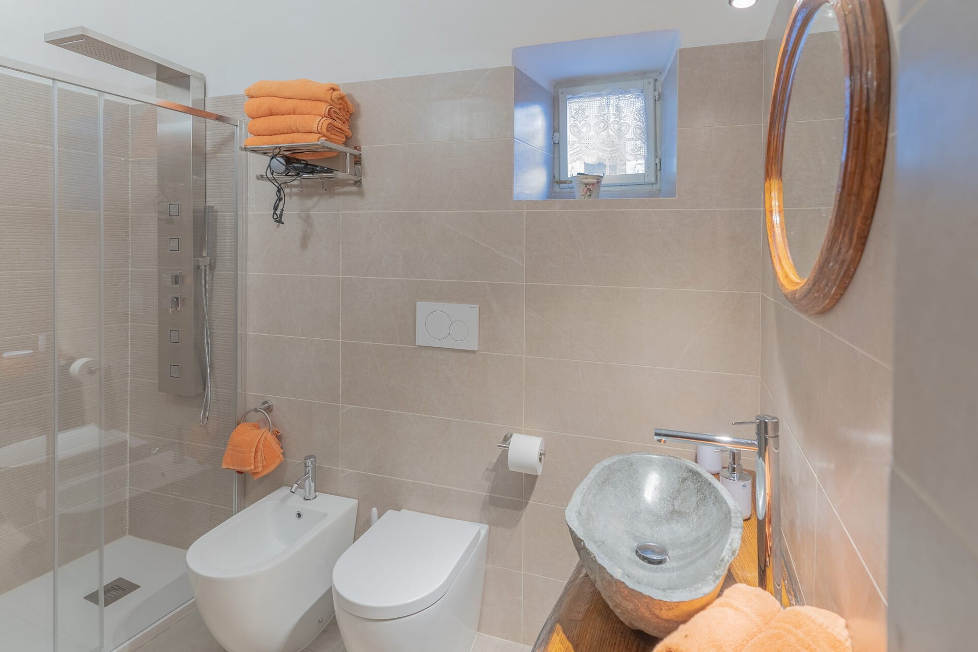 Badeværelse 4: vask, wc, bidet, badekar, hårtørrer.