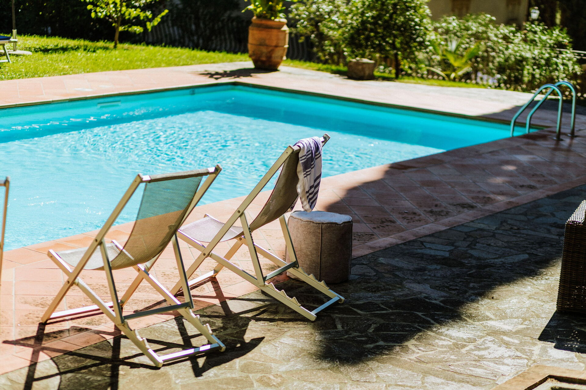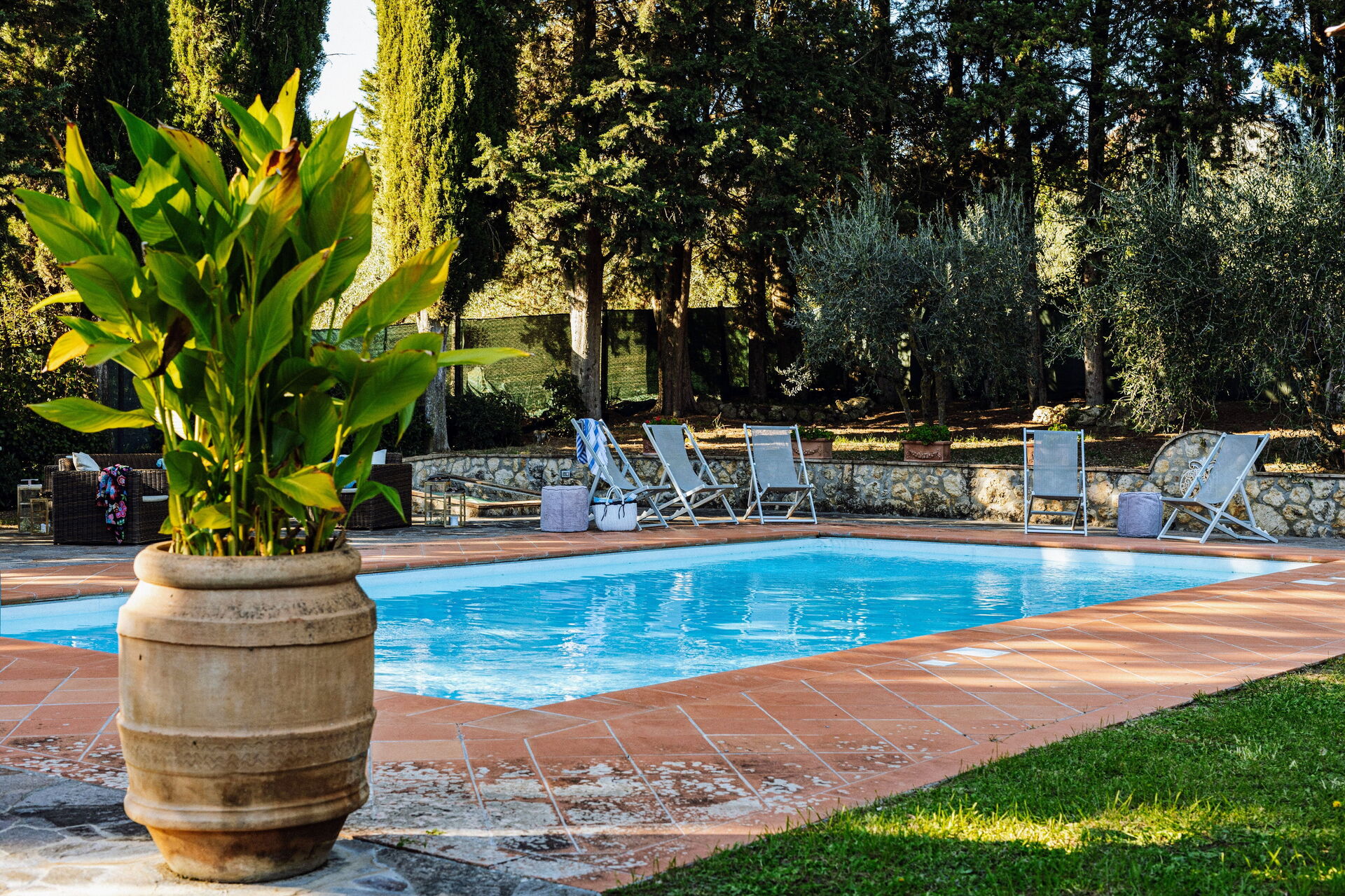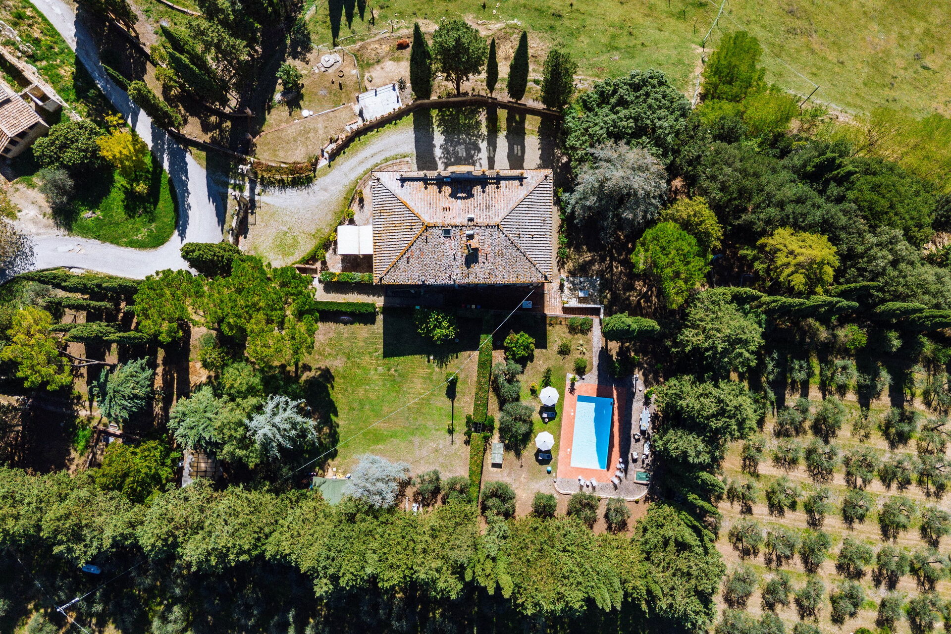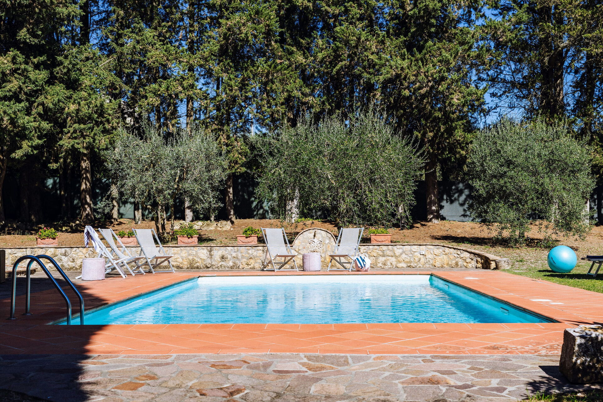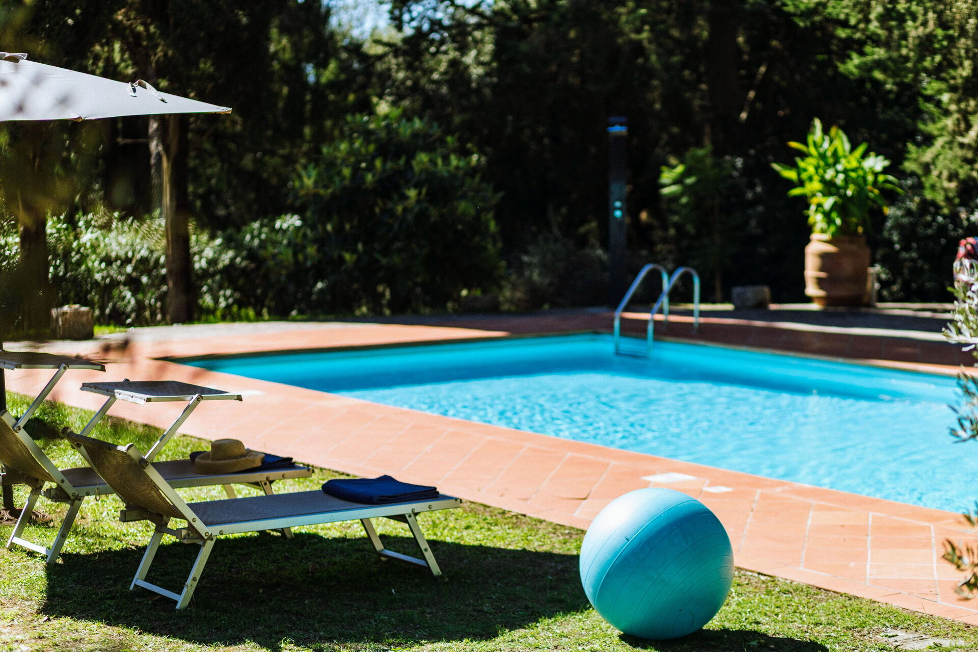 Ved ankomst vil I møde en fin ren velholdt ejendom med udsigt over bakkerne ideel til behagelig ferie i Toscana. Uanset hvordan I tilbringer dagene - med museumsbesøg, sightseeing, shopping eller bare ved at køre rundt på landet, så kan I slappe af med familie og venner ved poolen, når I kommer hjem, hvilket er en perfekt måde at afslutte endnu en dejlig dag på i Toscana. Til jeres store nydelse er der på ejendommen legeplads, gårdhave og barbecue. Hvis I nyder at lave mad til familie og venner så er der et veludstyret køkken inkluderet kaffemaskine, mikroovn, brødrister, komfur og køleskab, samt, , samt masser af service og bestik til op til 14 personer.