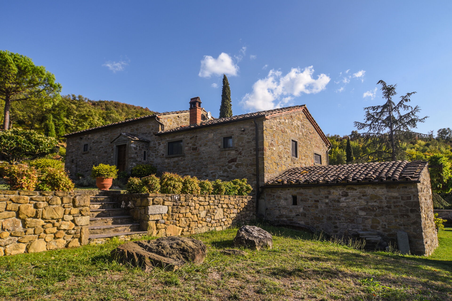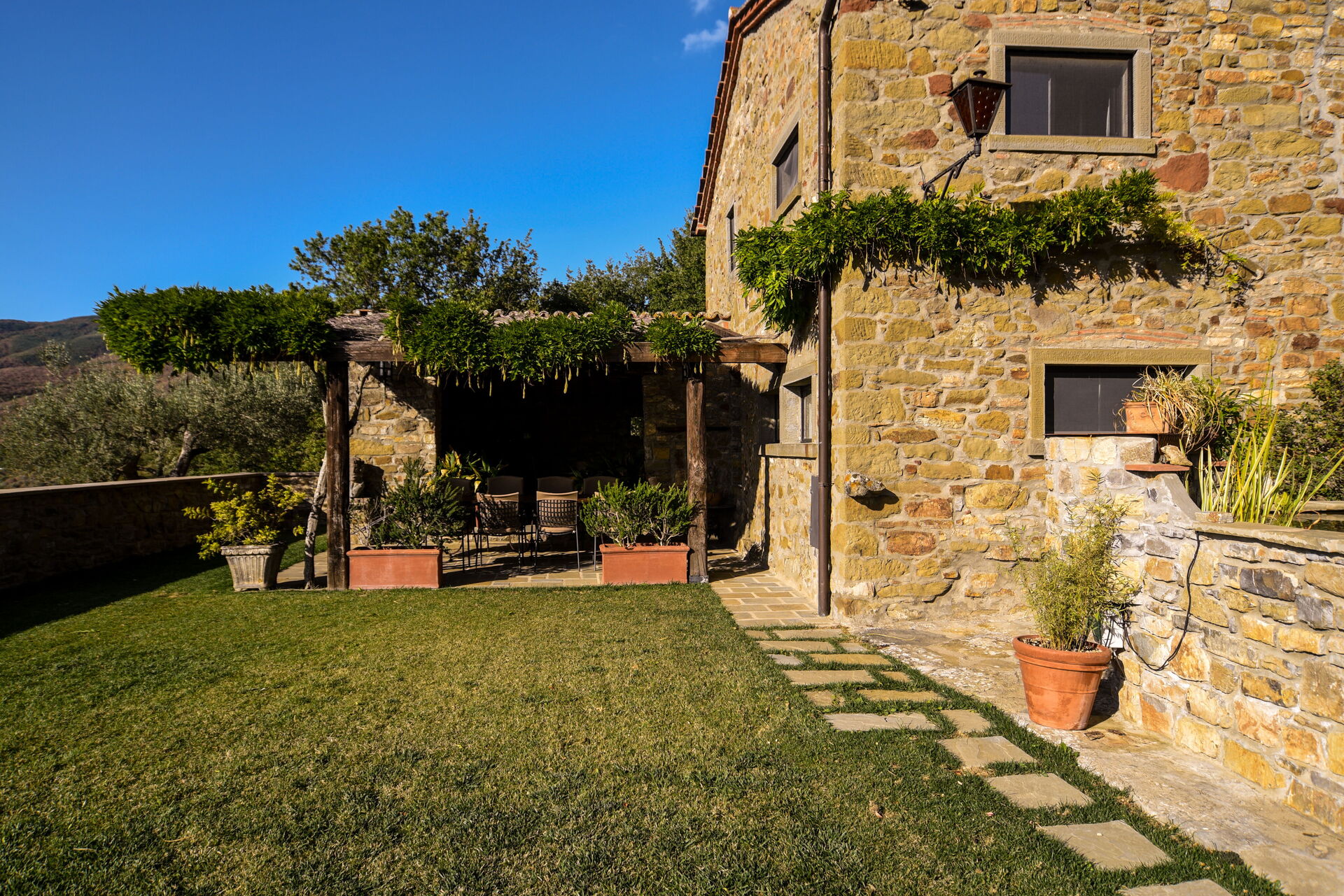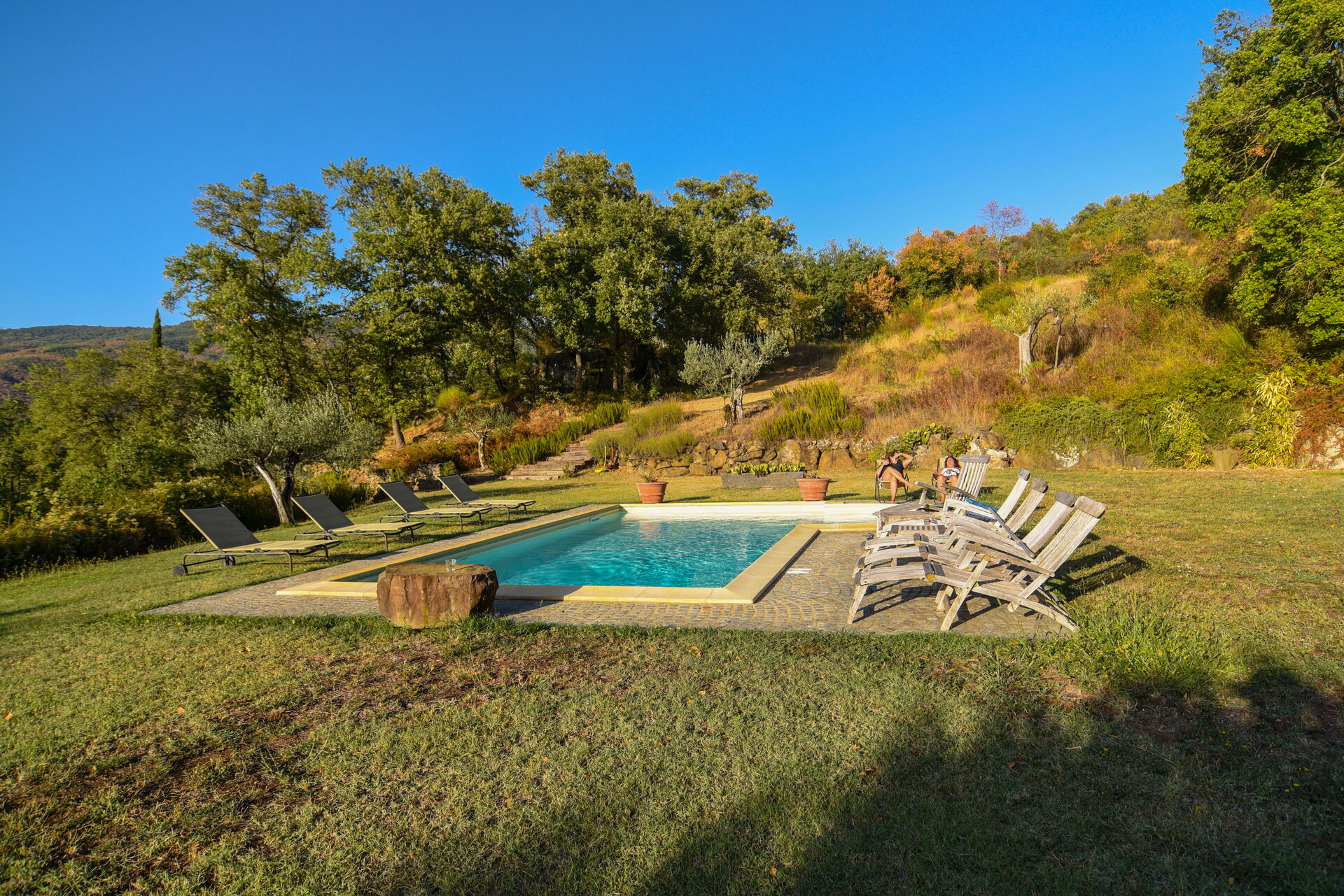 Ved ankomst vil I møde en skøn ren velholdt ejendom med udsigt over bakkerne og bjergene ideel til rolig ferie i Toscana. Efter en travl dag med shopping, er det dejligt at nyde lidt tid med venner og familie ved kanten af poolen med et glas vin - det er en perfekt måde at slappe af på sidst på dagen. Udendørs vil I finde barbecue og gårdhave. Hvis I nyder at lave mad til familie og venner så er der et veludstyret køkken inkluderet kaffemaskine, mikroovn, brødrister, komfur og køleskab, samt, , samt masser af service og bestik til op til ti personer.