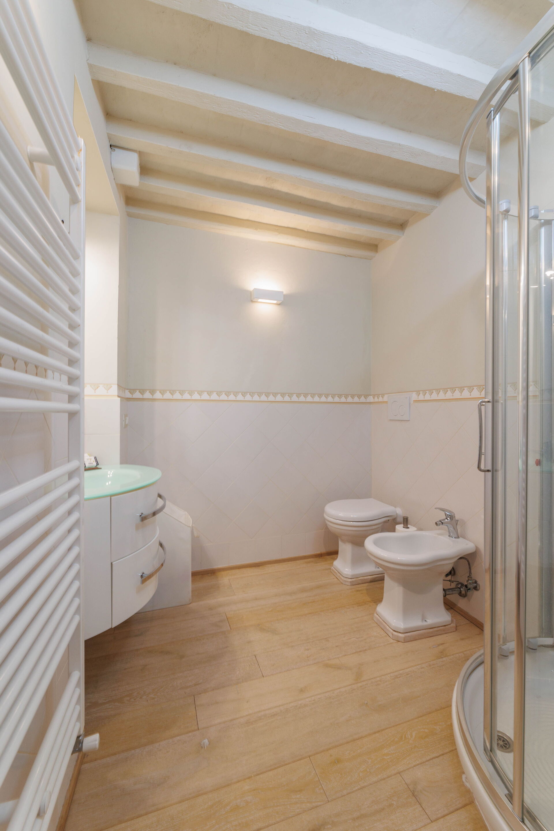 Når I ankommer, vil I møde en skøn ren velholdt ejendom med udsigt over byen og søen ideel til behagelig ferie i Toscana. Uanset hvordan I tilbringer dagene - med museumsbesøg, shopping, sightseeing eller bare ved at køre rundt på landet, så kan I køle ned med familie og venner , når I kommer hjem, hvilket er en perfekt måde at afslutte endnu en dejlig dag på i Toscana. Der er et køkken inkluderet kaffemaskine, brødrister og køleskab, samt, , samt masser af service og bestik til op til fire personer.