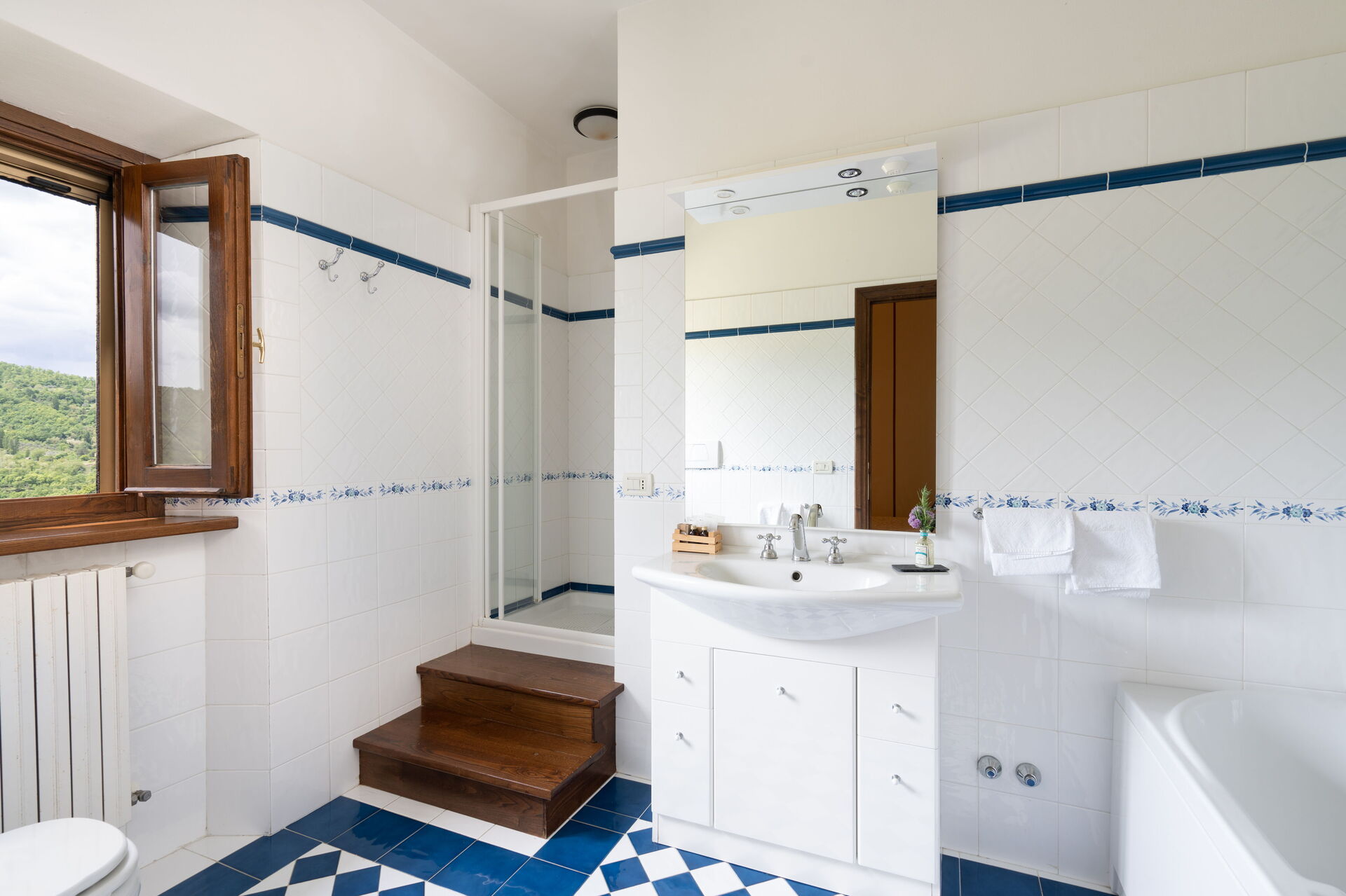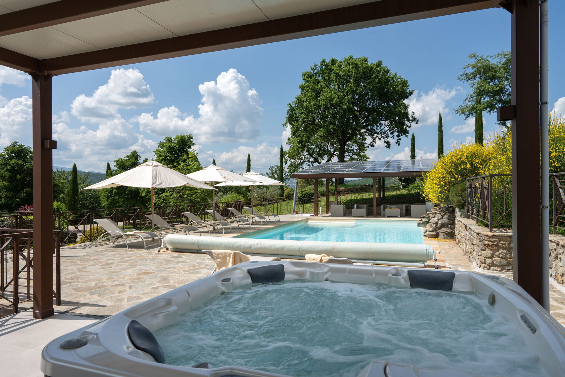 Ved ankomst til Villa Castelluccio - Arezzo, Toscana vil I finde en dejlig ren og velholdt ejendom med udsigt over bakkerne ideel til en afslappende ferie i Toscana. Uanset hvordan I tilbringer dagene - med sightseeing, shopping, museumsbesøg eller bare ved at køre rundt på landet, så kan I køle ned med familie og venner ved poolen, når I kommer hjem, hvilket er en perfekt måde at afslutte endnu en dejlig dag på i Toscana. Til jeres store nydelse er der på ejendommen tennisbane, boblebad, gårdhave, barbecue og legeplads. Hvis I nyder at lave mad til familie og venner så er der et veludstyret køkken inkluderet kaffemaskine, mikroovn, komfur og køleskab, samt, , samt masser af service og bestik til op til 14 personer.