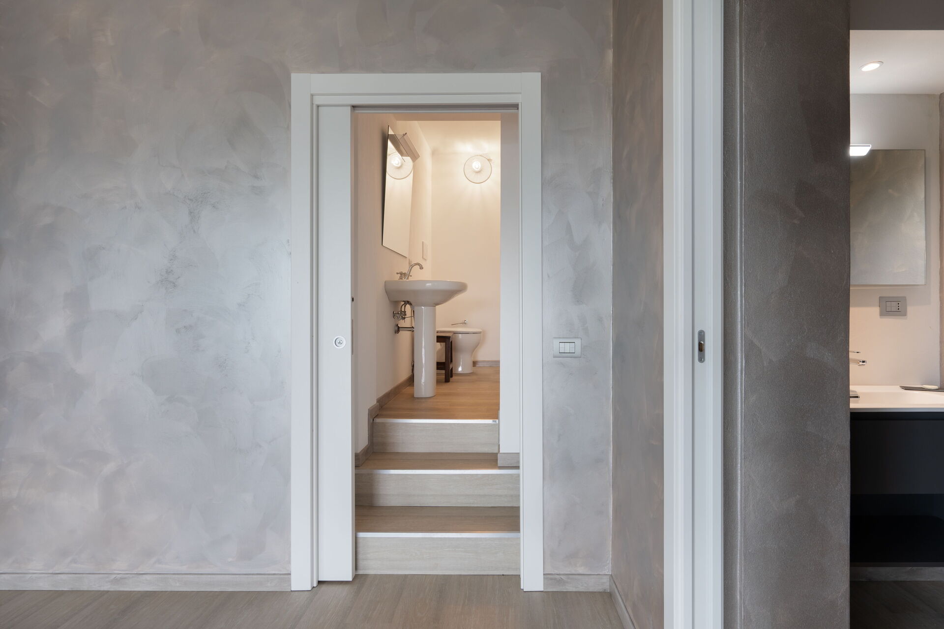 Badeværelse: vask, wc, bidet, bruser.