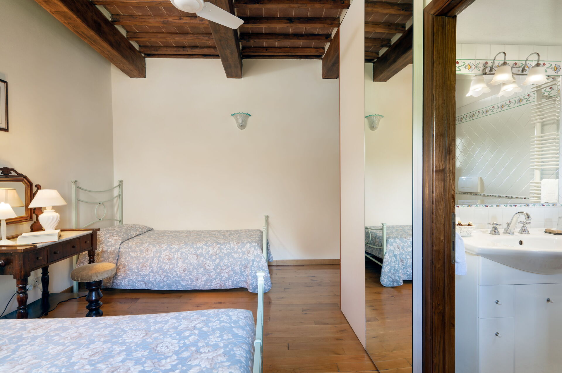 Soveværelse med bad 3: to enkeltsenge, WIFI internet, klimaanlæg, myggenet, vask, wc, bidet, bruser.
