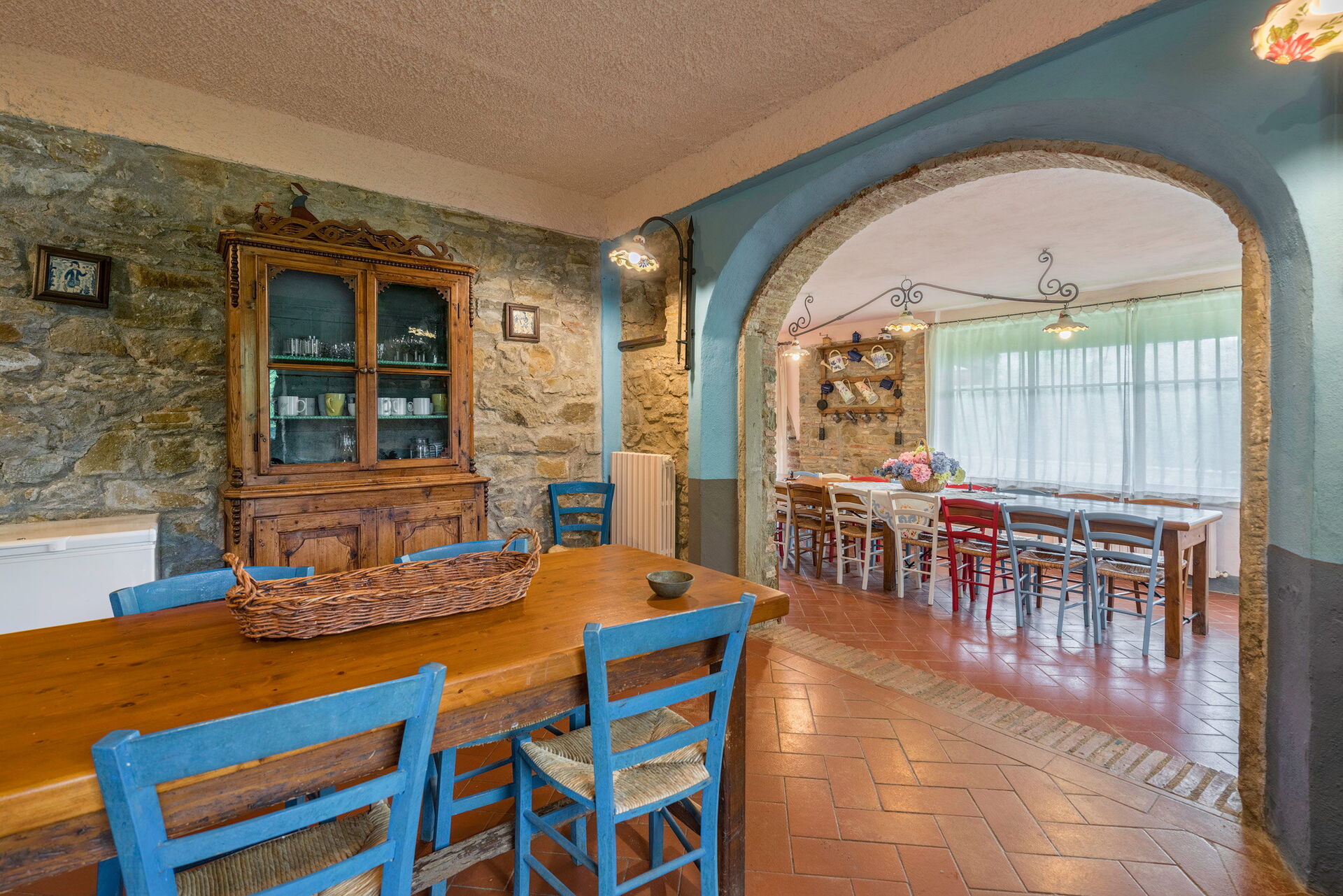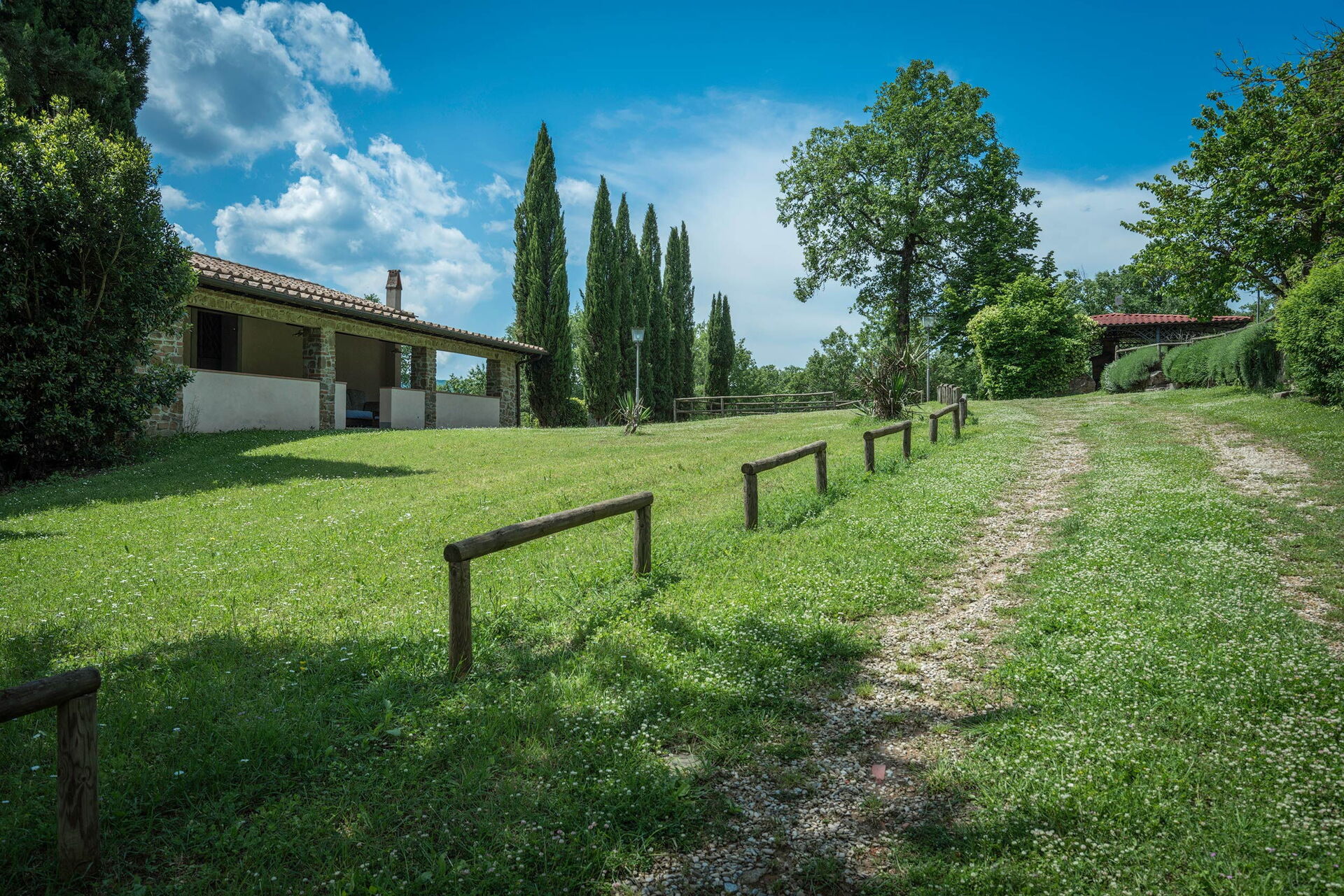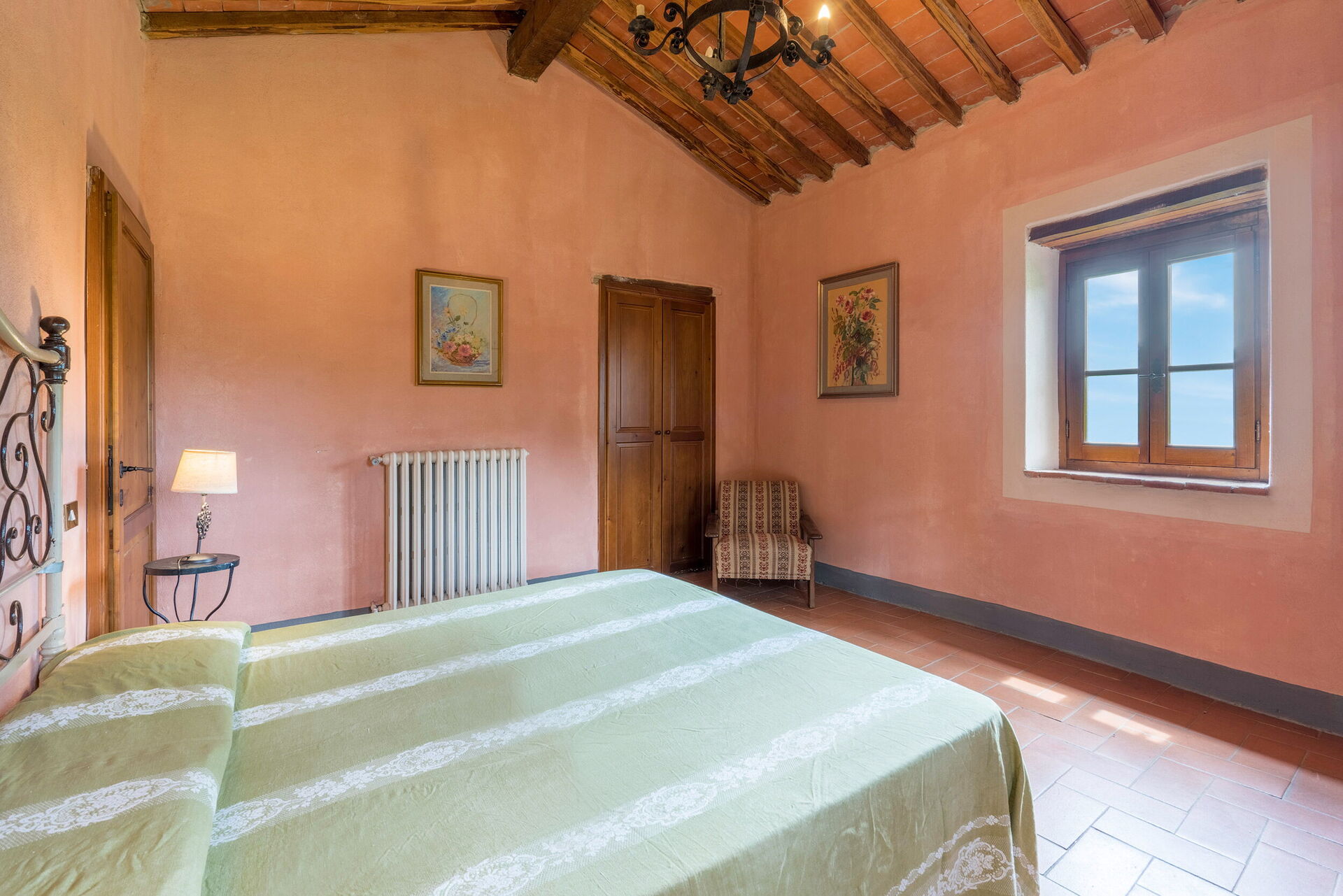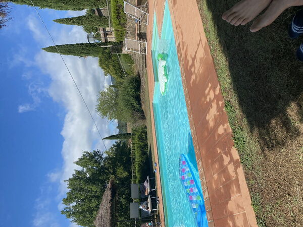 Når I ankommer, vil I blive budt velkommen af ejeren eller repræsentanten og I vil finde en dejlig ren og velholdt ejendom med udsigt over bakkerne perfekt til en behagelig ferie i Toscana. Til jeres store nydelse vil I finde en privat pool, hvor I kan køle ned, mens I nyder en dejlig kold drik efter en hektisk dag med shopping. Udendørs vil I også finde gårdhave, legeplads og barbecue. At spise med venner og familie er en stor del af den toskanske kultur. Benyt det velekviperede køkken til madlavning med lokale produkter, når du er på ferie. Køkkenet indeholder kaffemaskine, komfur og køleskab, samt, masser af service og bestik til op til 20 personer.