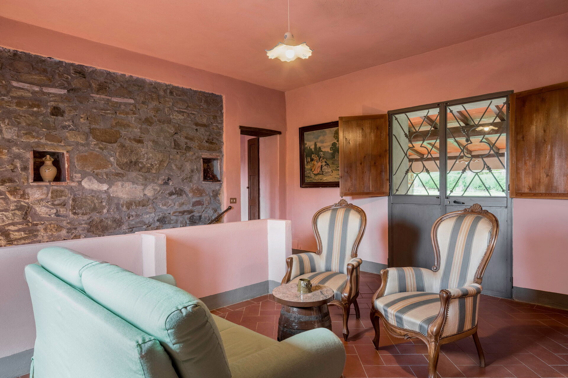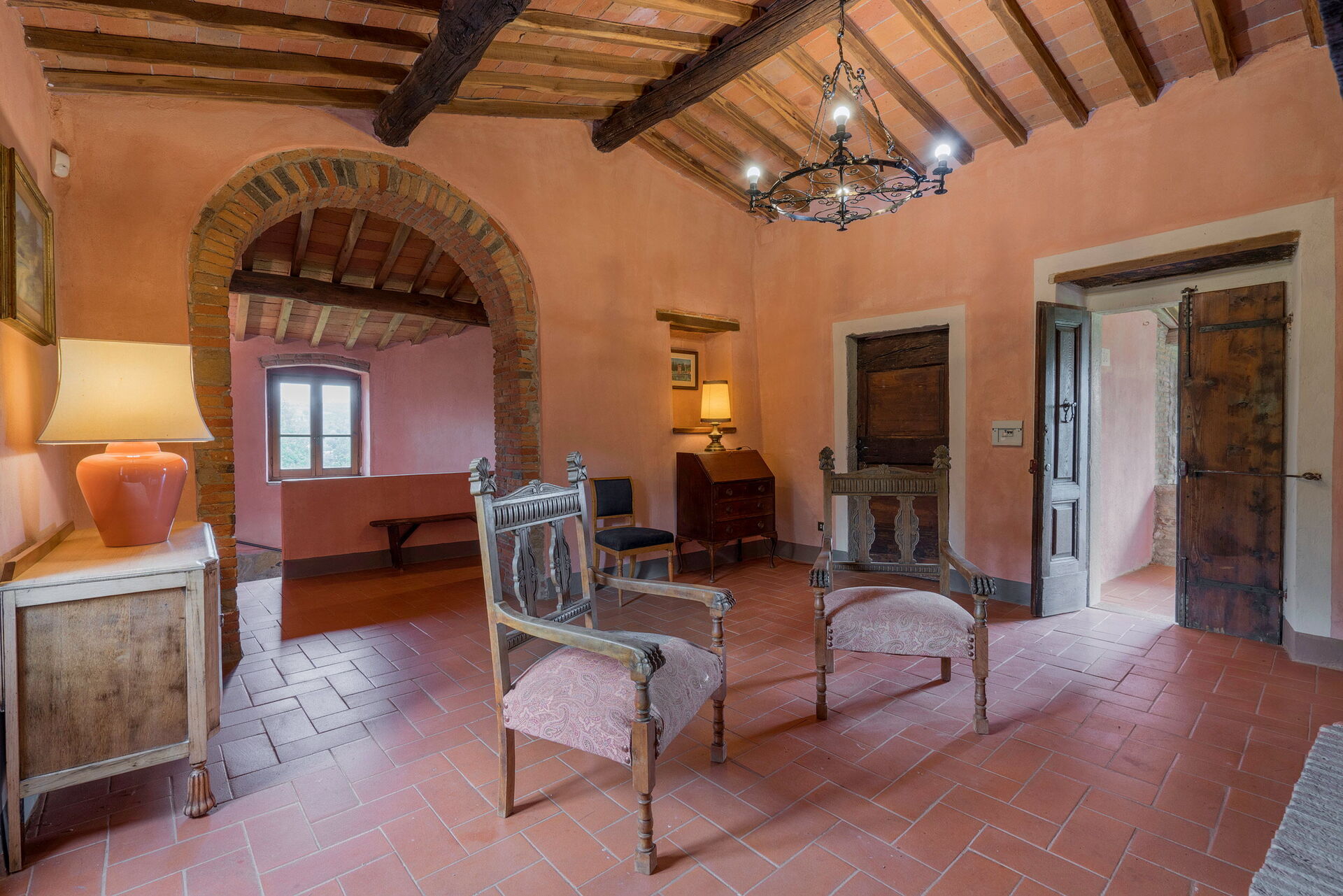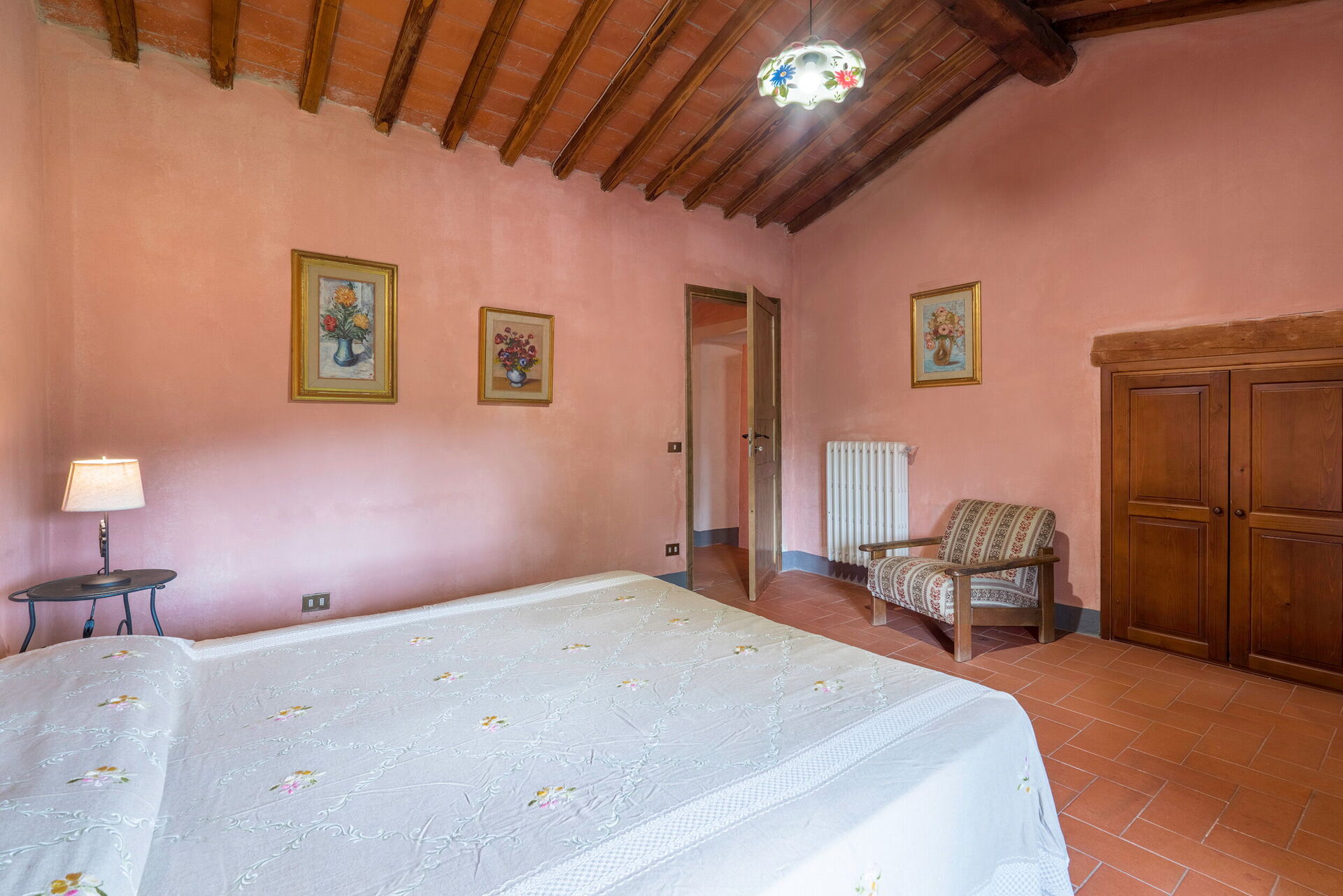 Når I ankommer, vil I blive budt velkommen af ejeren eller repræsentanten og I vil finde en dejlig ren og velholdt ejendom med udsigt over bakkerne perfekt til en behagelig ferie i Toscana. Til jeres store nydelse vil I finde en privat pool, hvor I kan køle ned, mens I nyder en dejlig kold drik efter en hektisk dag med shopping. Udendørs vil I også finde gårdhave, legeplads og barbecue. At spise med venner og familie er en stor del af den toskanske kultur. Benyt det velekviperede køkken til madlavning med lokale produkter, når du er på ferie. Køkkenet indeholder kaffemaskine, komfur og køleskab, samt, masser af service og bestik til op til 20 personer.