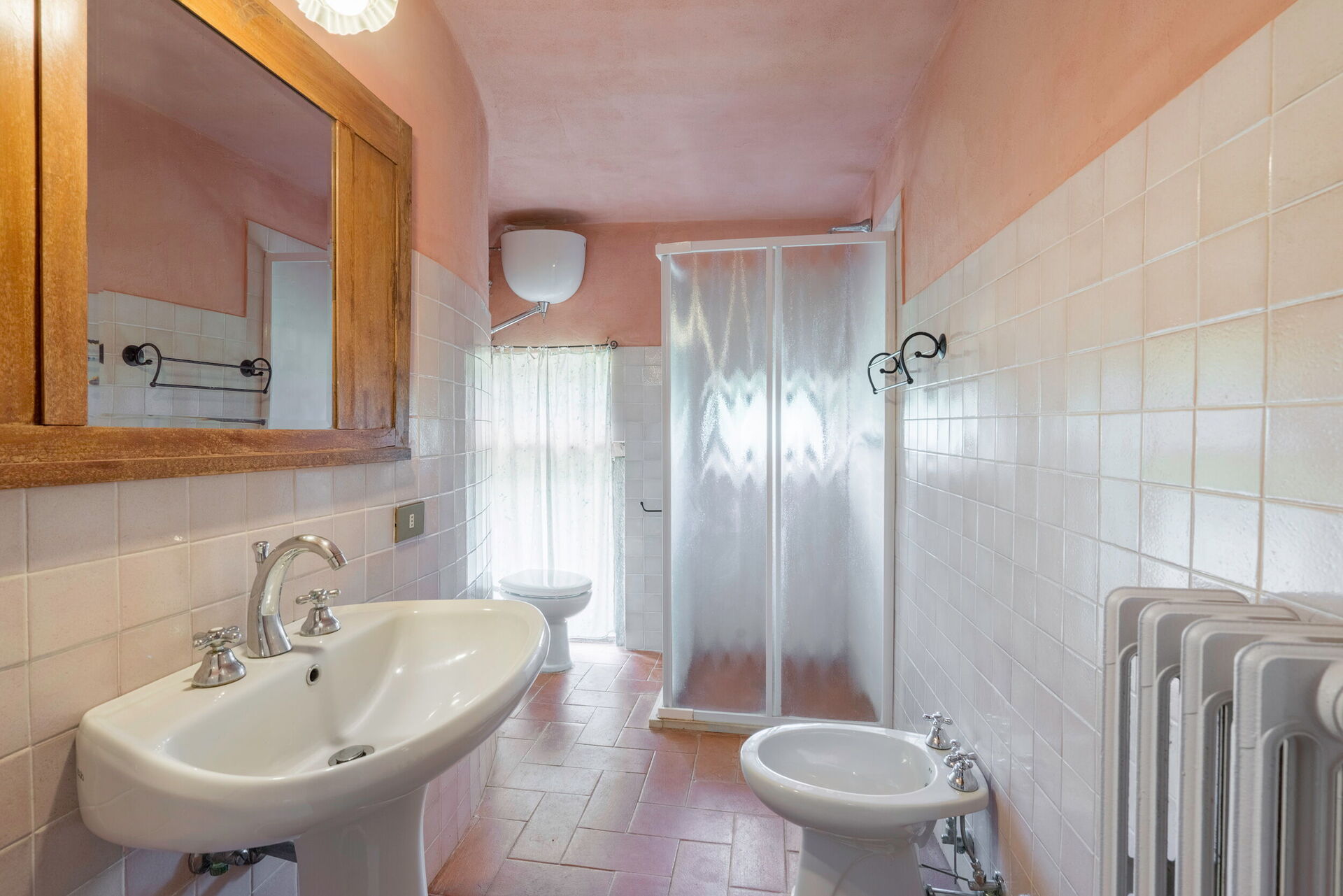Soveværelse med bad 1: tre enkeltsenge, WIFI internet, vask, wc, bidet, bruser.