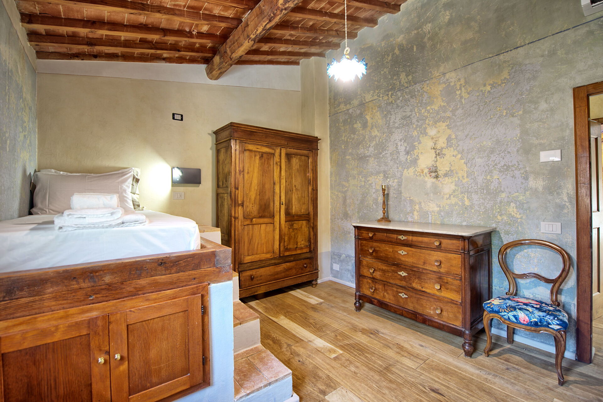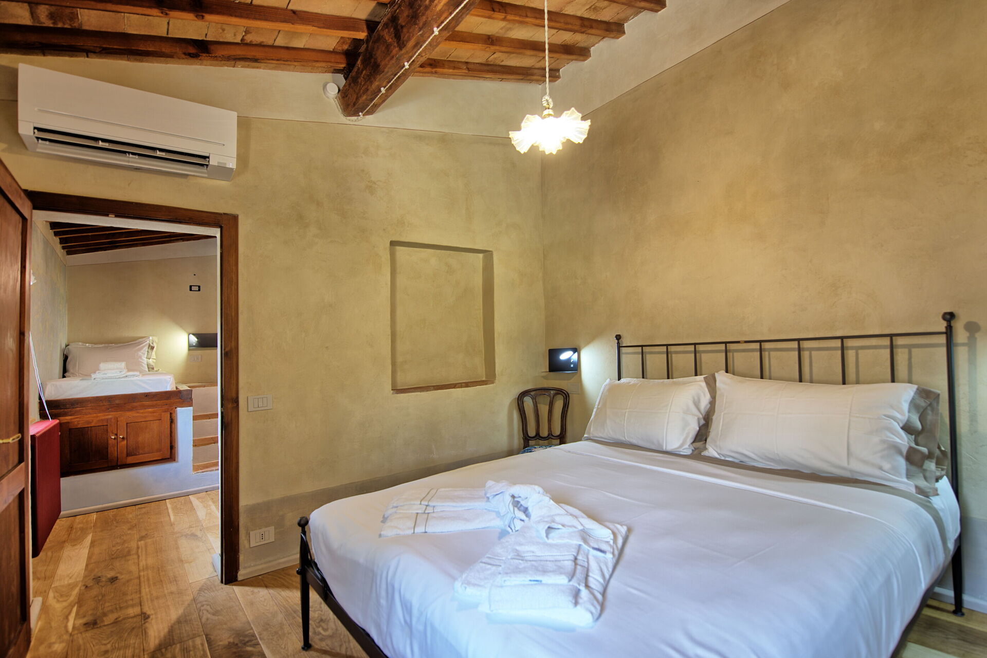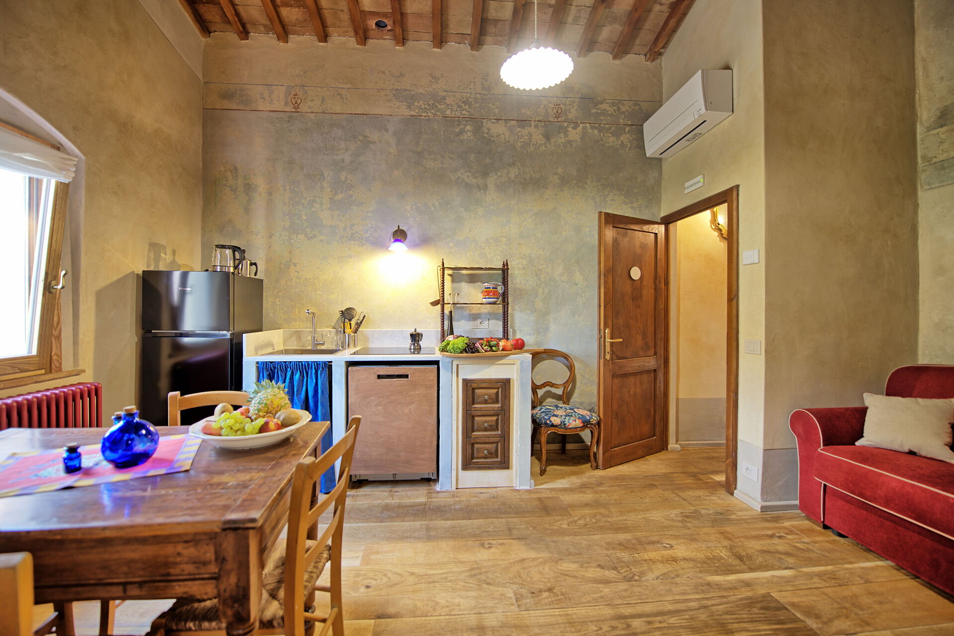 Lille stue, 1 dobbeltværelse med eget badeværelse med bruser, sammenhængende værelse med enkeltseng og adgang til 1 dobbeltværelse med eget badeværelse med bruser, køkken (induktionskomfur, opvaskemaskine, køleskab), 1 dobbeltværelse (med enkelt sovesofa , efter anmodning) og eget badeværelse med bruser