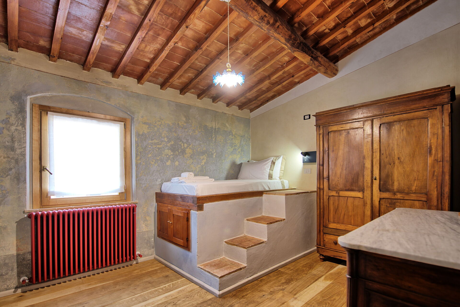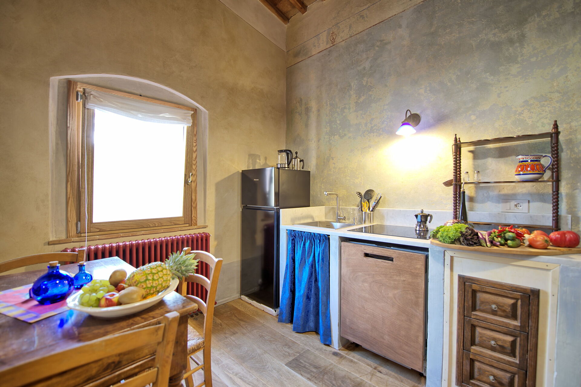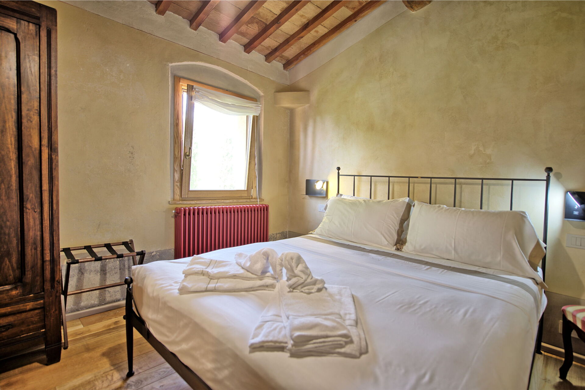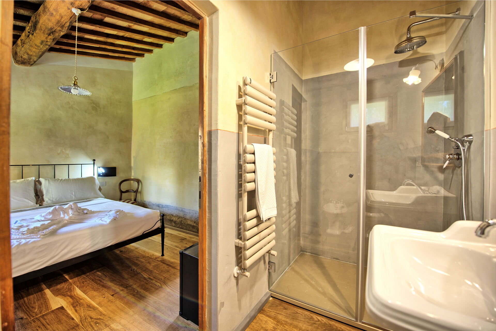 Lille stue, 1 dobbeltværelse med eget badeværelse med bruser, sammenhængende værelse med enkeltseng og adgang til 1 dobbeltværelse med eget badeværelse med bruser, køkken (induktionskomfur, opvaskemaskine, køleskab), 1 dobbeltværelse (med enkelt sovesofa , efter anmodning) og eget badeværelse med bruser