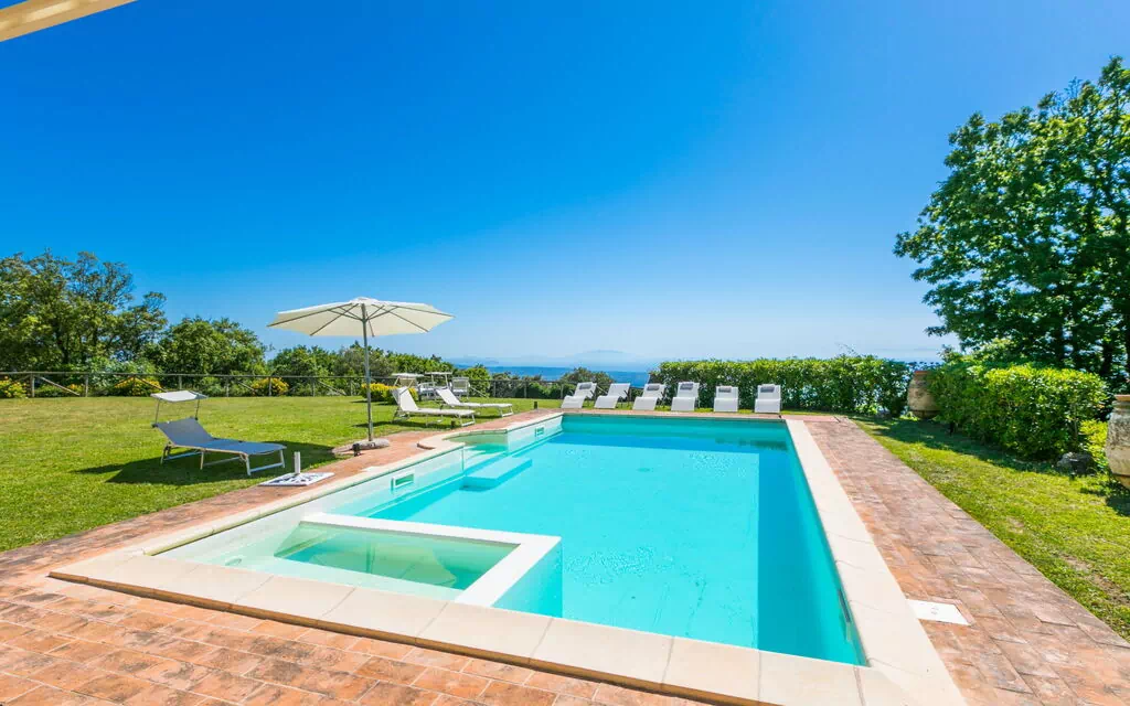 Stor villa "Poggio al Pruno", på 2 etager, fritstående, omgivet af træer. Ejendom bestående af hovedhus og udhus ovenfor La Sassa, 2 km fra bymidten, på en bakke, 10 m fra skovbryn, 30 km fra havet, 30 km fra stranden. Til alene benyttelse: grund 28 ha, have 2'000 m2 (indhegnet), pool (4 x 9 m, 150 - 150 cm dyb, Sæsonbestemt tilgængelighed: 01.Maj. - 15.Okt.). I anlægget: tagterrasse. Skift af linned (yderlige ekstras). Udskiftning af håndklæder (yderlige ekstras). Hushjælp muligt (ekstra). Kok muligt (ekstra). Indkøbsservice mulig før ankomst. 2 km lang, tilkørsel (natursti). Parkeringsplads. Fødevarebutik 8 km, supermarked 28 km, busstoppested 2 km, sandstrand "Marina di Cecina" 32 km, varmtvandsbad "Calidario" 43 km. Marina 45 km. Nærliggende attraktioner: Volterra 38 km, Pisa 85 km, Firenze 120 km. Bemærk venligst: bil anbefales.