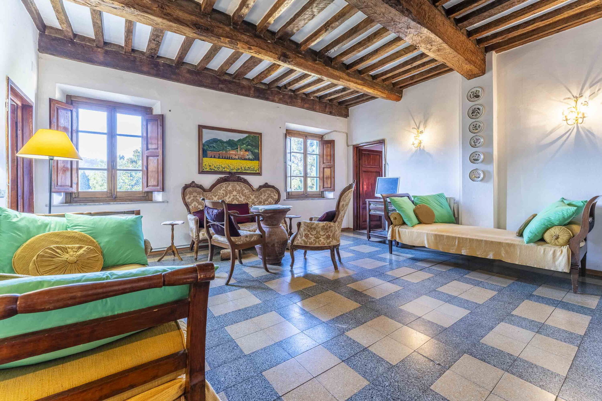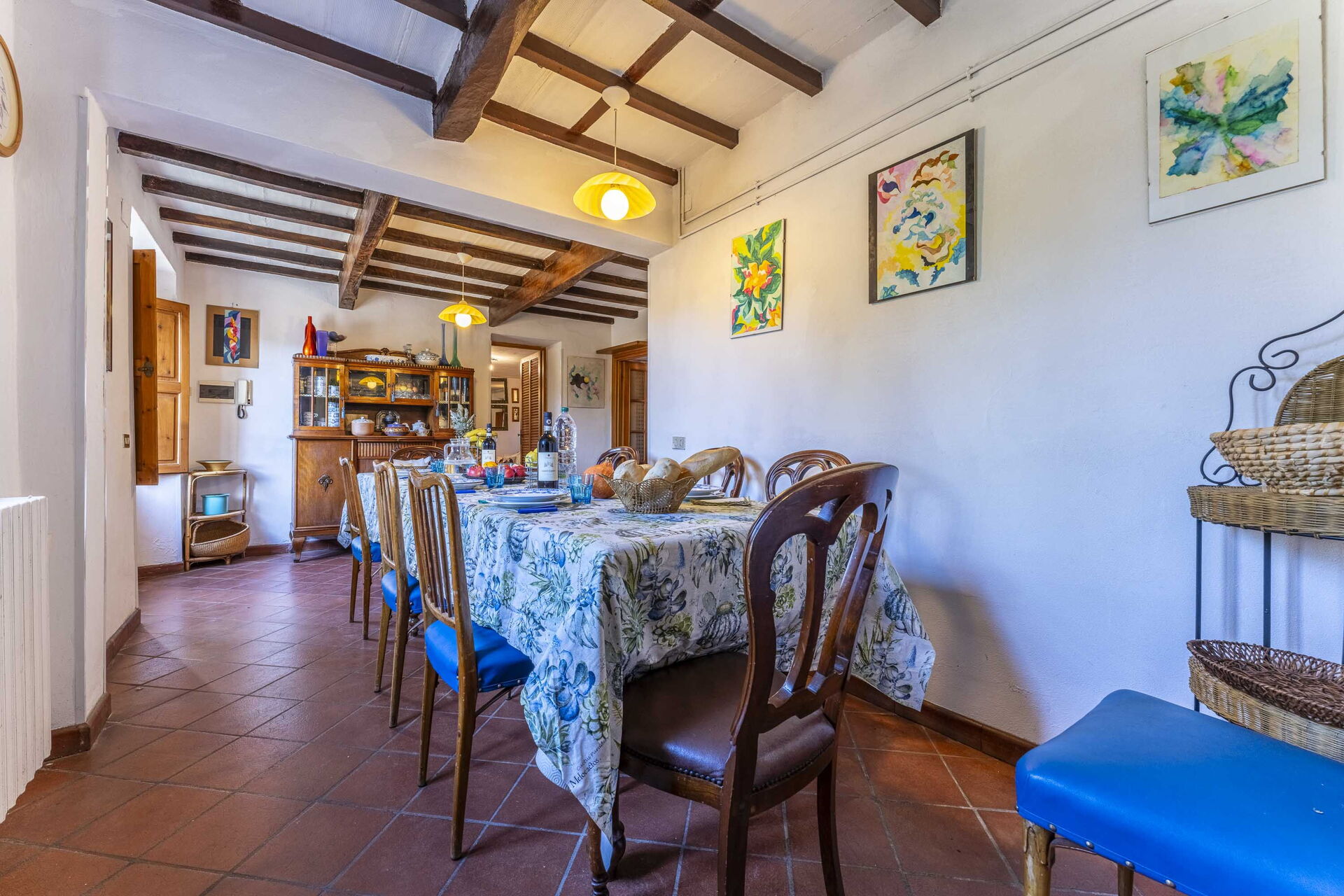 Ved ankomst vil I blive budt velkommen af ejeren eller repræsentanten og I vil finde en dejlig ren og velholdt ejendom med udsigt over bakkerne perfekt til en rolig ferie i Toscana. Uanset hvordan I tilbringer dagene - med museumsbesøg, sightseeing, shopping eller bare ved at køre rundt på landet, så kan I slappe af med familie og venner , når I kommer hjem, hvilket er en perfekt måde at afslutte endnu en dejlig dag på i Toscana. At spise med venner og familie er en stor del af den toskanske kultur. Benyt køkkenet til madlavning med lokale produkter, når du er på ferie. Køkkenet indeholder brødrister, komfur og køleskab, samt, masser af service og bestik til op til otte personer.