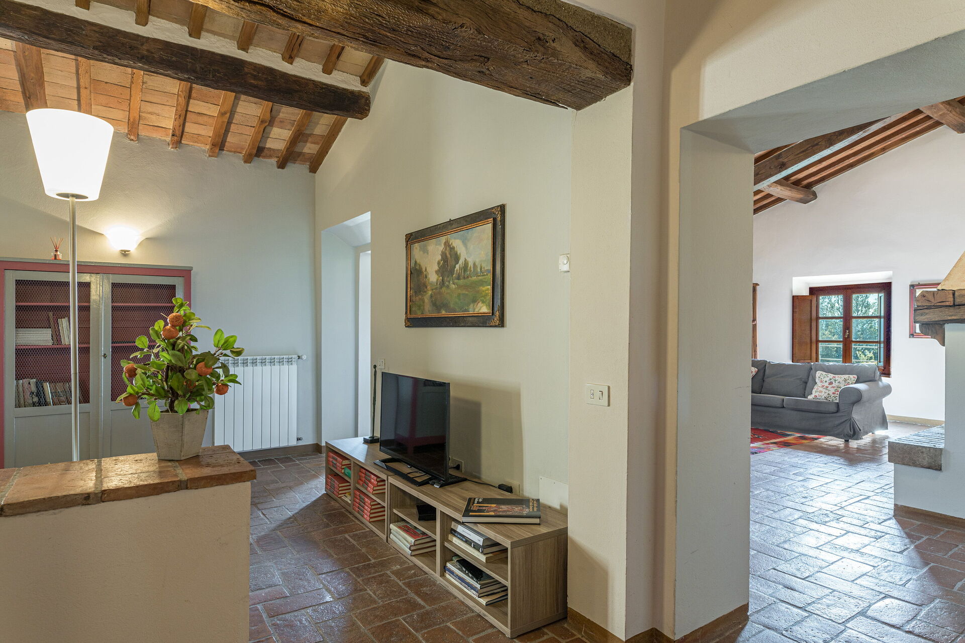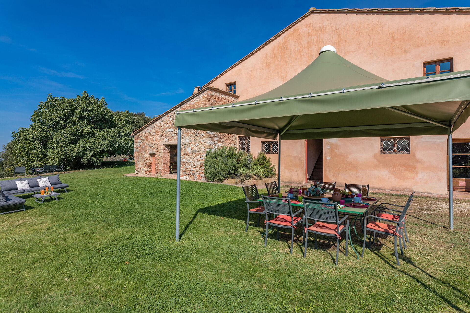 Ved ankomst vil I møde en dejlig ren velholdt ejendom med udsigt over bakkerne ideel til afslappende ferie i Toscana. Uanset hvordan I tilbringer dagene - med sightseeing, shopping, museumsbesøg eller bare ved at køre rundt på landet, så kan I slappe af med familie og venner ved poolen, når I kommer hjem, hvilket er en perfekt måde at afslutte endnu en dejlig dag på i Toscana. Til jeres store nydelse er der på ejendommen gårdhave og grill. At nyde et måltid med venner og familie er en stor del af den toskanske kultur. Benyt det velekviperede køkken til madlavning med lokale produkter, når du er på ferie. Køkkenet indeholder kaffemaskine, mikroovn, brødrister, komfur og køleskab, samt, masser af service og bestik til op til otte personer. Spis 'al fresco' som en ægte toskaner. Den fuldt møblerede veranda er det ideele sted for at nyde sit måltid, familien og det flotte toskanske vejr.