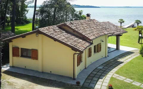 5-værelse-chalet 110 m2 på 2 etager. Komfortabelt og moderne indrettet: stue/spisestue med køkkenblok og TV (fladskærms TV). Stue med veranda. Udgang til have. 1 værelse med 1 seng, 1 dobbeltseng og brus/bidet/WC. 1 dobbeltværelse med brus/bidet/WC. Kogeniche (ovn, opvaskemaskine, Brødrister, kedel, mikroovn, elektrisk kaffemaskine, Kapsler til kaffemasin (nespresso)). Gas-opvarming, klimaanlæg. Opvarme kun tilgængelig fra 08.11. til 07.04. Overetage: galleri med TV (fladskærms TV). Herlige udsigt over søen. Til benyttelse: vaskemaskine, myggenet hårtørrer. Internet (trådløs LAN [WLAN]). Bemærk venligst: ikke-ryger hus. 1 lille husdyr/hund tilladt. IT054026C202033118