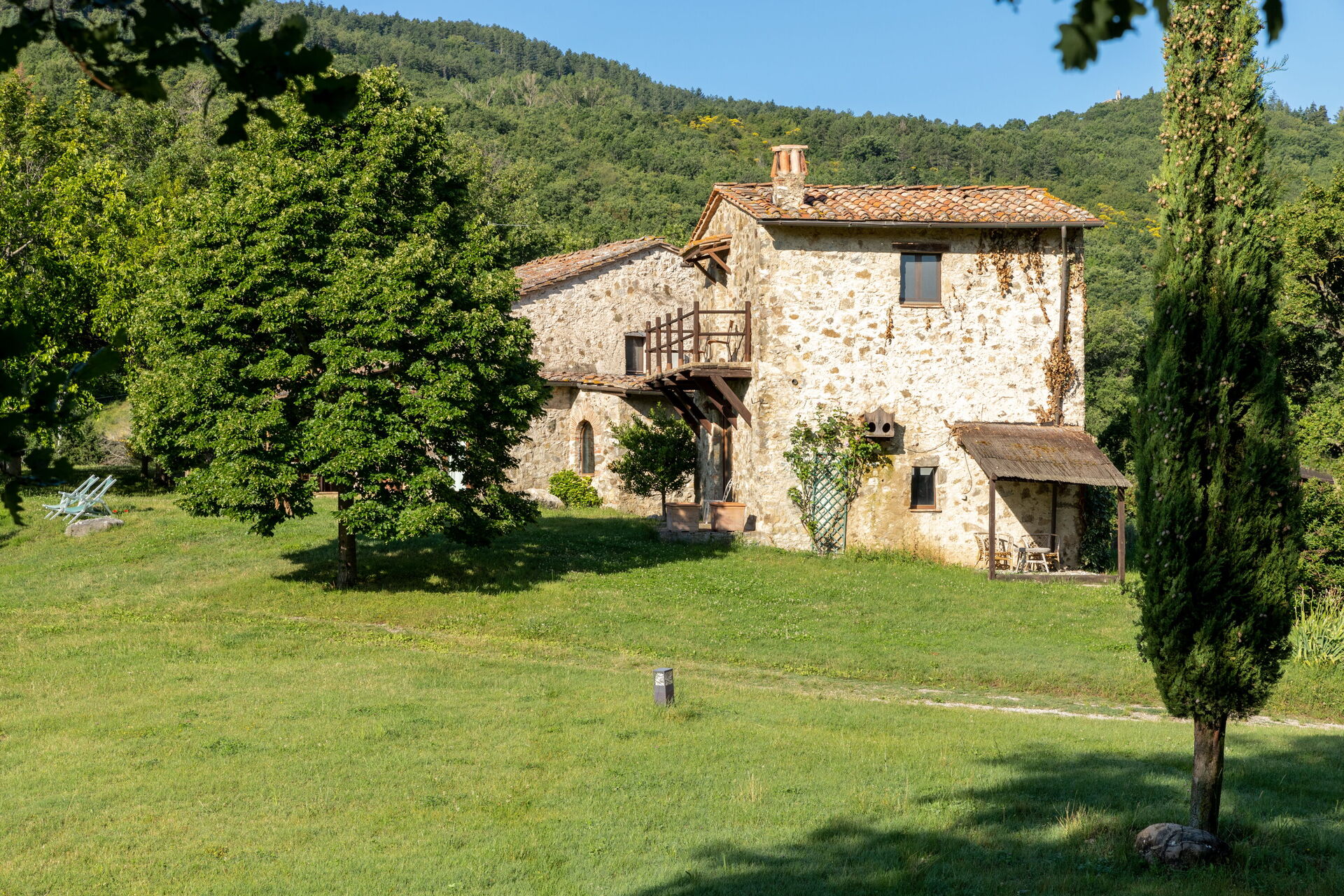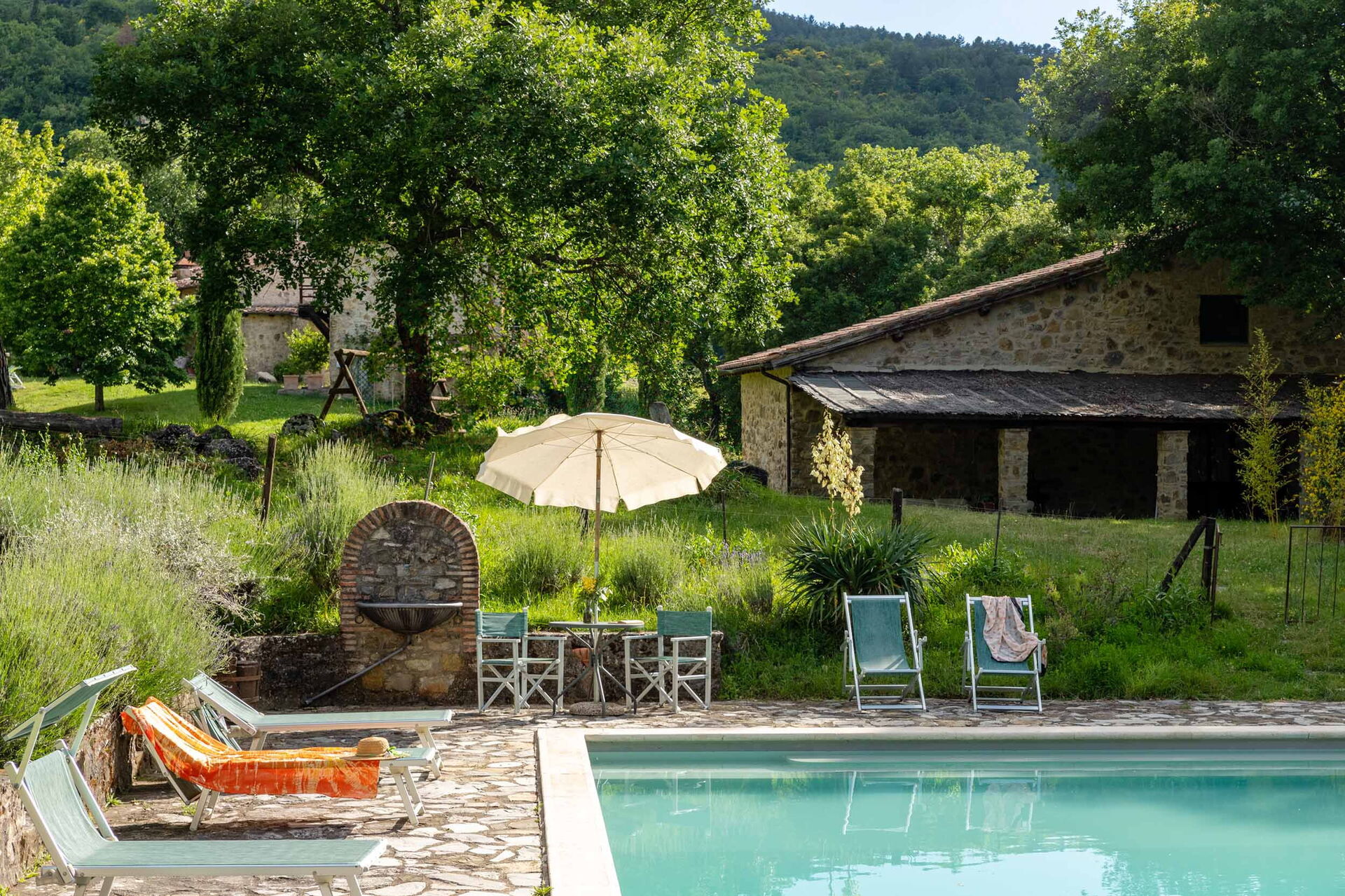 Når I ankommer, vil I blive modtaget af ejeren eller repræsentanten og I vil finde en flot ren og velholdt ejendom med udsigt over bjergene perfekt til en fredelig ferie i Toscana. Til jeres store glæde vil I finde en privat pool, hvor I kan køle ned, mens I nyder en dejlig kold drik efter en hektisk dag med shopping. At spise med venner og familie er en kæmpe del af den toskanske kultur. Benyt det velekviperede køkken til madlavning med lokale produkter, når du er på ferie. Køkkenet indeholder kaffemaskine, komfur og køleskab, samt, masser af service og bestik til op til 16 personer.