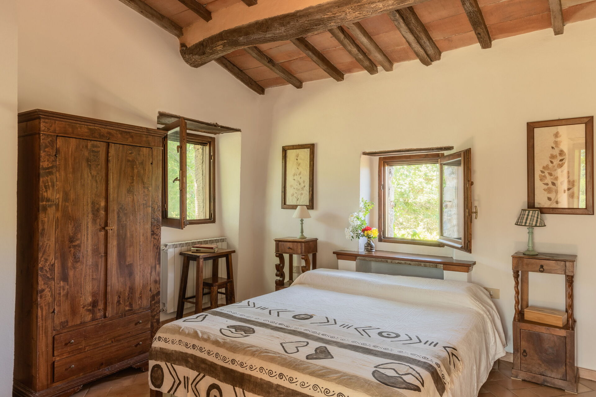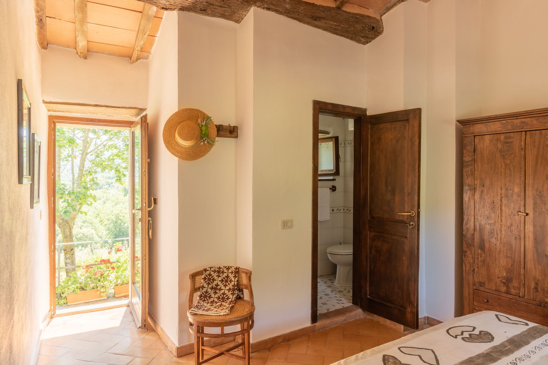 Soveværelse med bad 2: dobbeltseng, WIFI internet, vask, wc, bidet, bruser, hårtørrer, udgang til have.