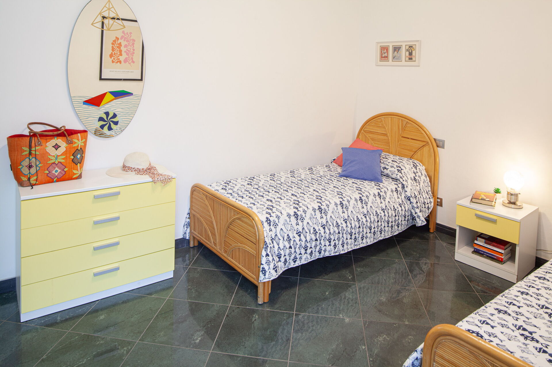 Til 4 personer, med to soveværelser: et med dobbeltseng, et med to enkeltsenge.
