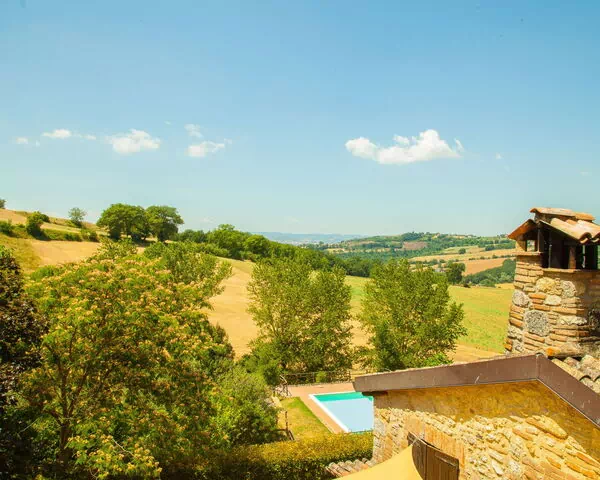 Hus på landet "Tra Cielo e Terra", fritstående, omgivet af græsmarker og marker. 10 km fra bymidten af Todi, isoleret beliggenhed. Til medbenyttelse: grund 5 ha. Til alene benyttelse: pool (5 x 12 m, 150 cm dyb, Sæsonbestemt tilgængelighed: 15.Maj. - 15.Sep.). Havemøbler, grill. Stejl tilkørsel (600 m natursti). Parkeringsplads på grunden. Fødevarebutik 7 km, supermarked 7 km, restaurant 5 km, havet Corbara 23 km. Nærliggende attraktioner: Viepri 10 km, Bevagna 20 km, Spello 35 km, Assisi 38 km, Perugia 40 km. Bemærk venligst: bil anbefales. Ejeren accepterer ikke nogen ungdomsgrupper. Ejer bor på sammen grund. Ejeren har en hund.